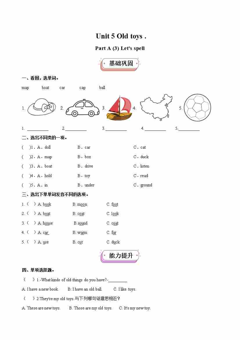 三下英语-Unit5(第3课时)Old toys . PartA Let's spell 同步分层作业(人教PEP版)