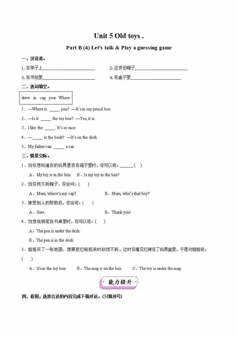 三下英语-Unit5(第4课时)Old toys . PartB Let's talk&Play a guessing game 同步分层作业(人教PEP版)