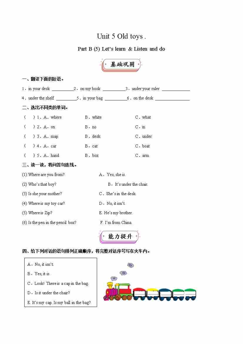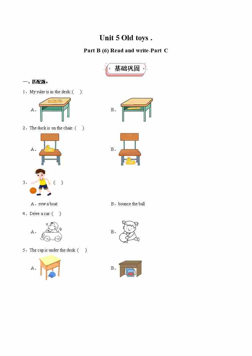 三下英语-Unit5(第5课时)Old toys . PartB Let's Learn&Listen and do 同步分层作业(人教PEP版)