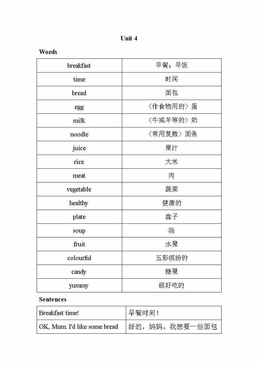 Unit 4 Healthy food(知识清单)