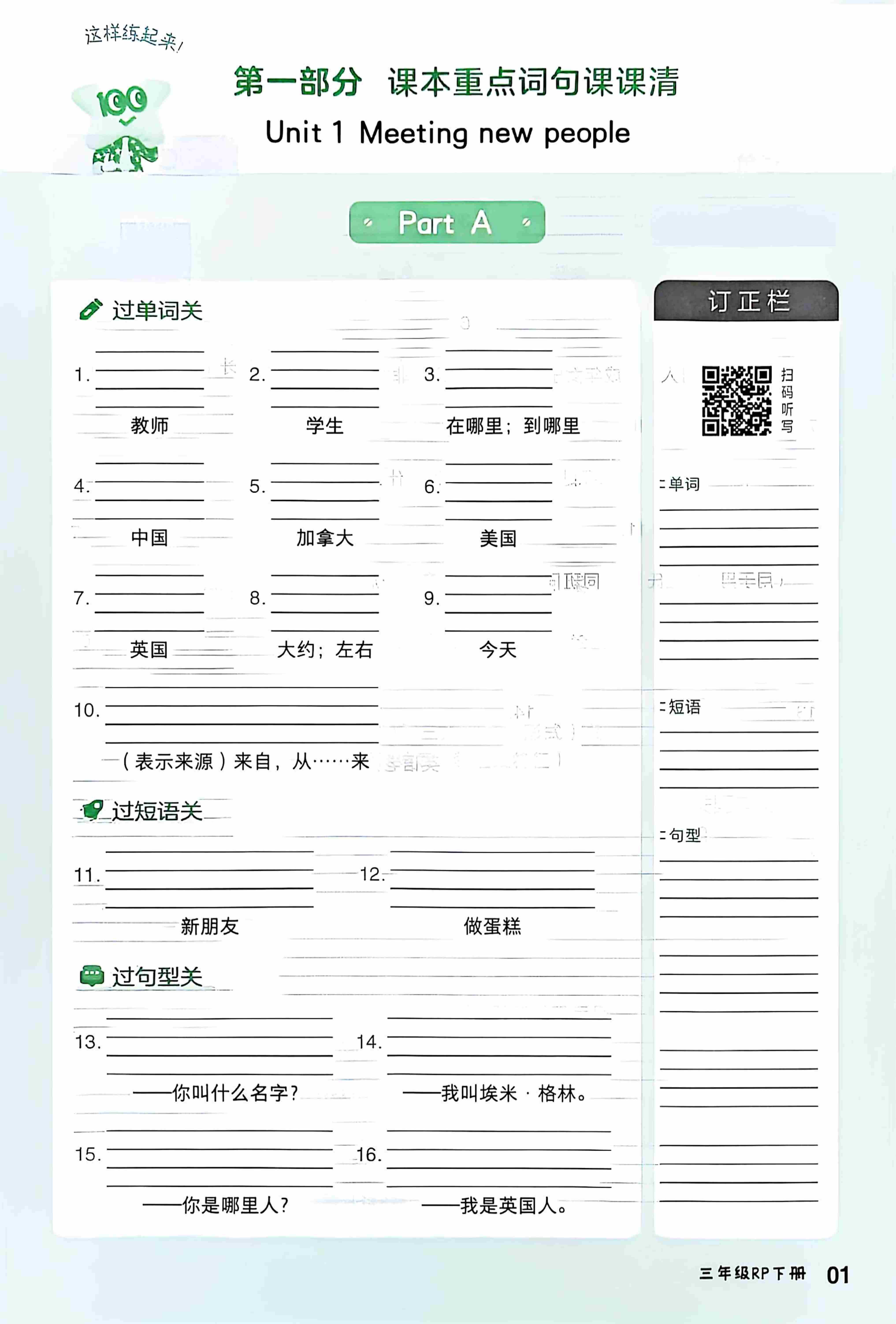 三(下)人教PEP版英语【25春-课时《一遍过》1-50页】