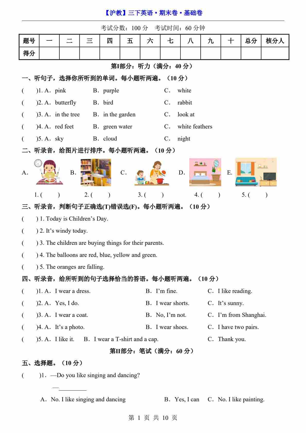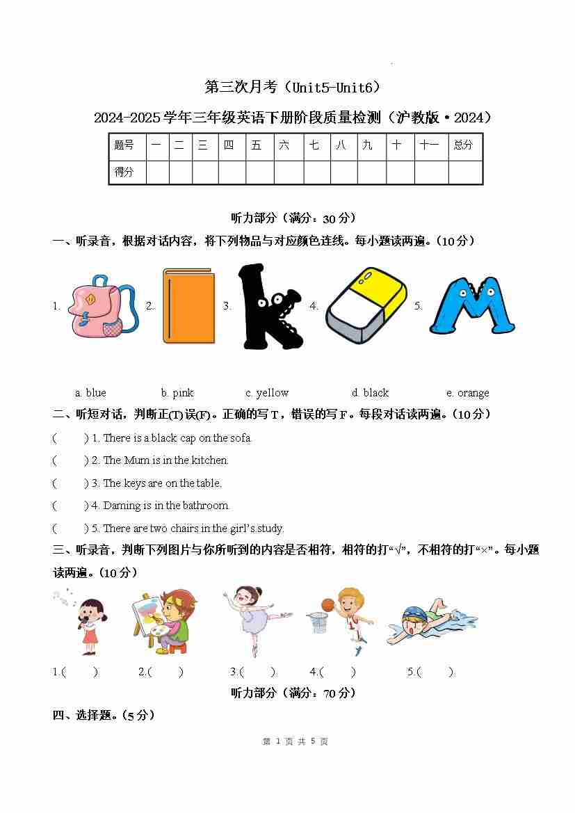 三下英语沪教版第三次月考(Unit5-Unit6)(考试版A4)