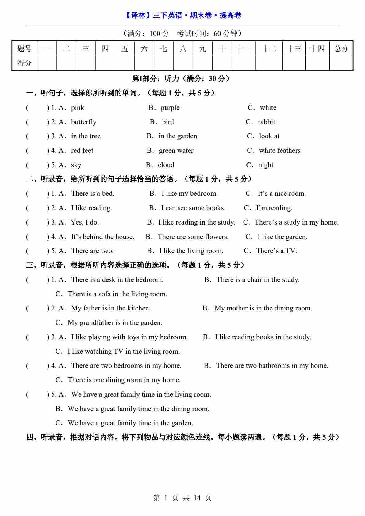 Unit 1~Unit 4 沪教版三下英语期中检测培优卷(解析版)