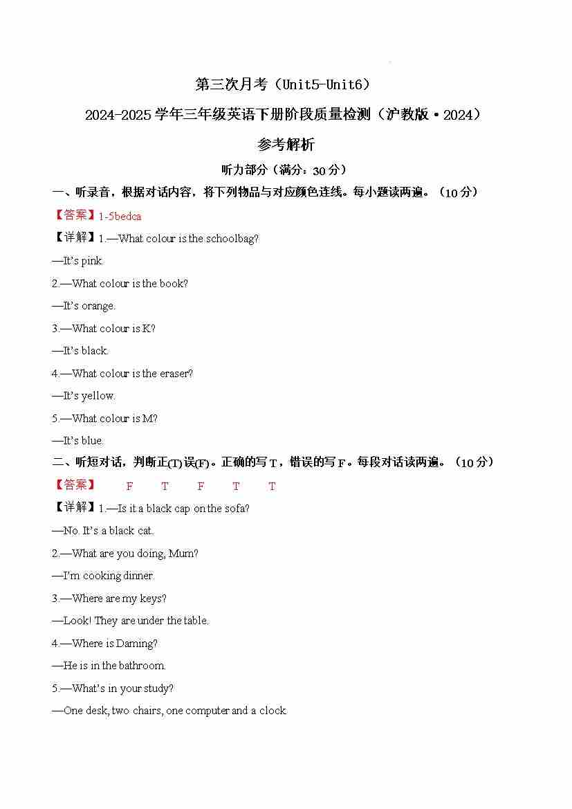 三下英语沪教版第三次月考(Unit5-Unit6)(参考解析)