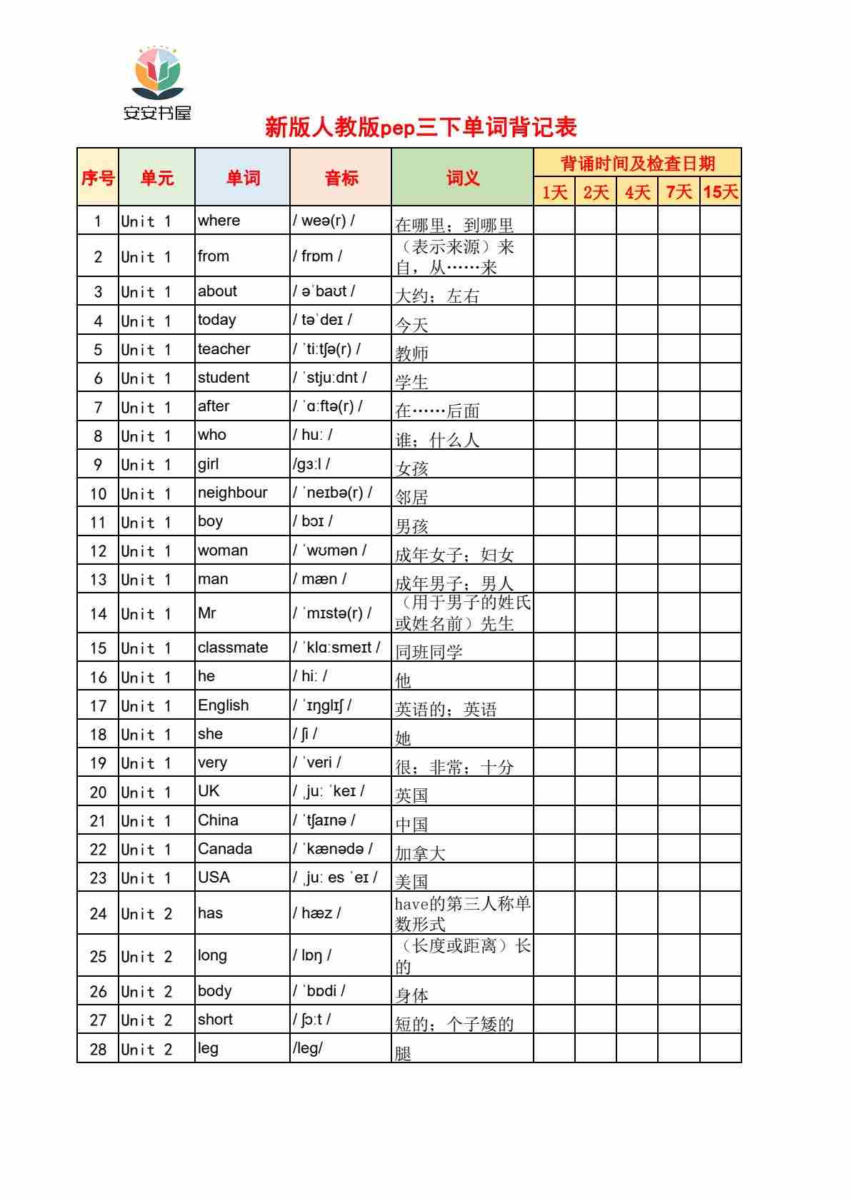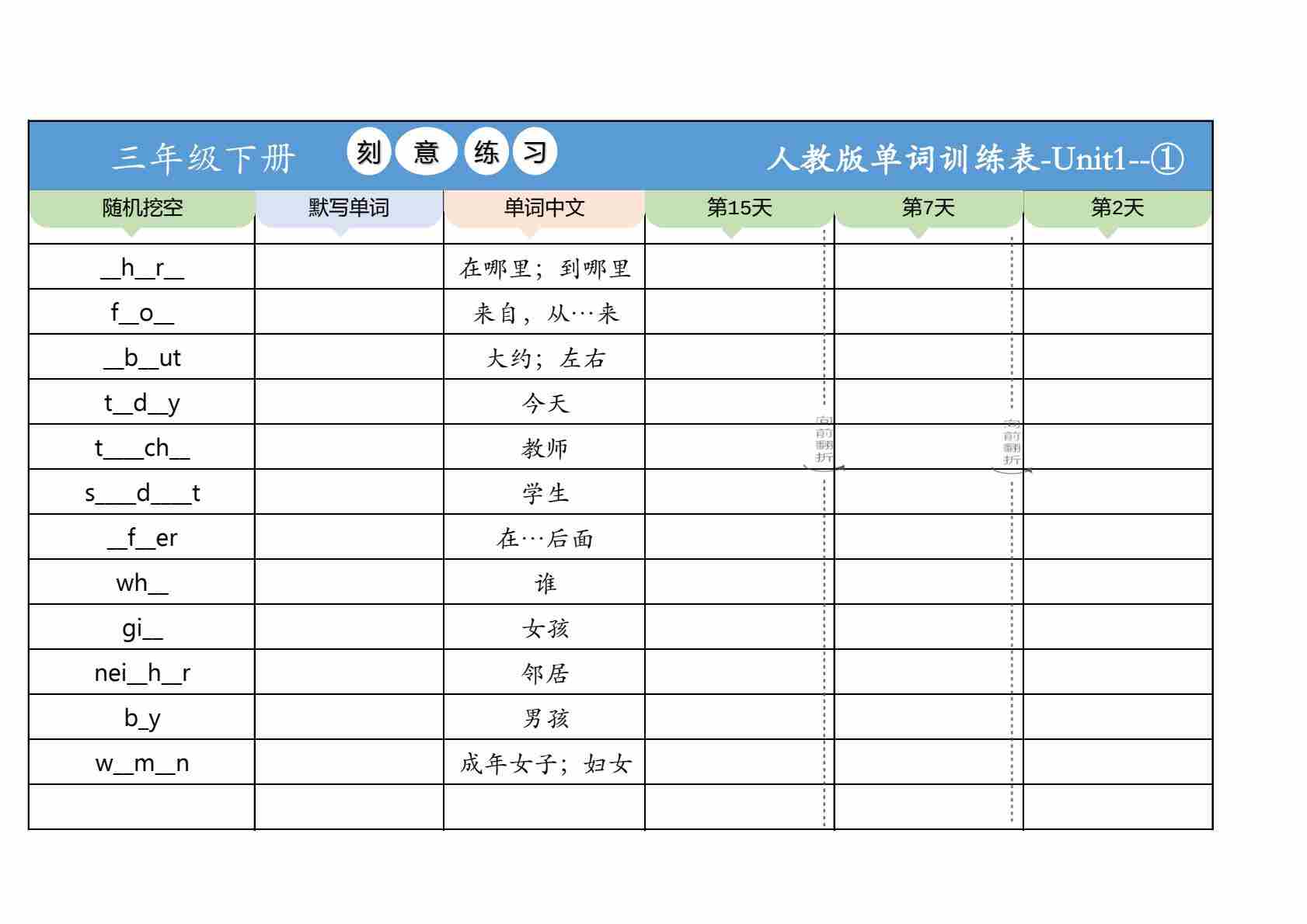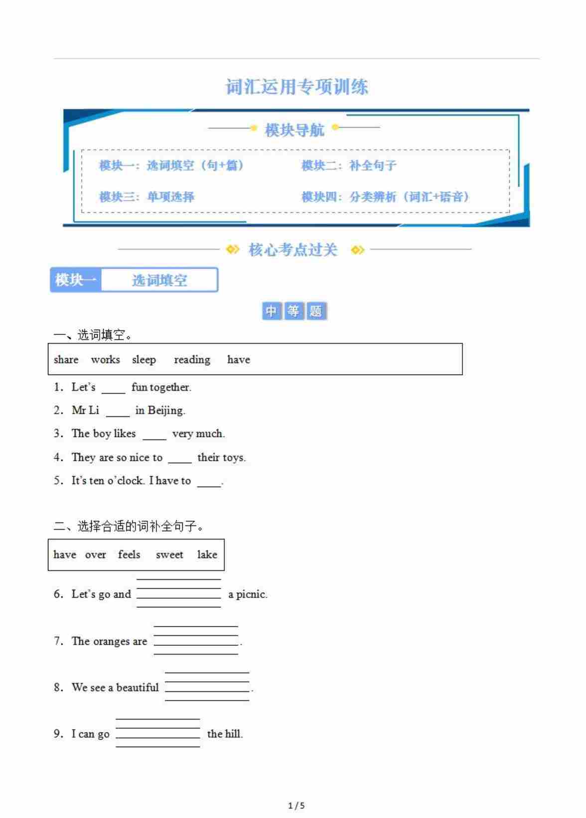 三(下)英语新人教版PEP寒假作业专题5-9【空白】