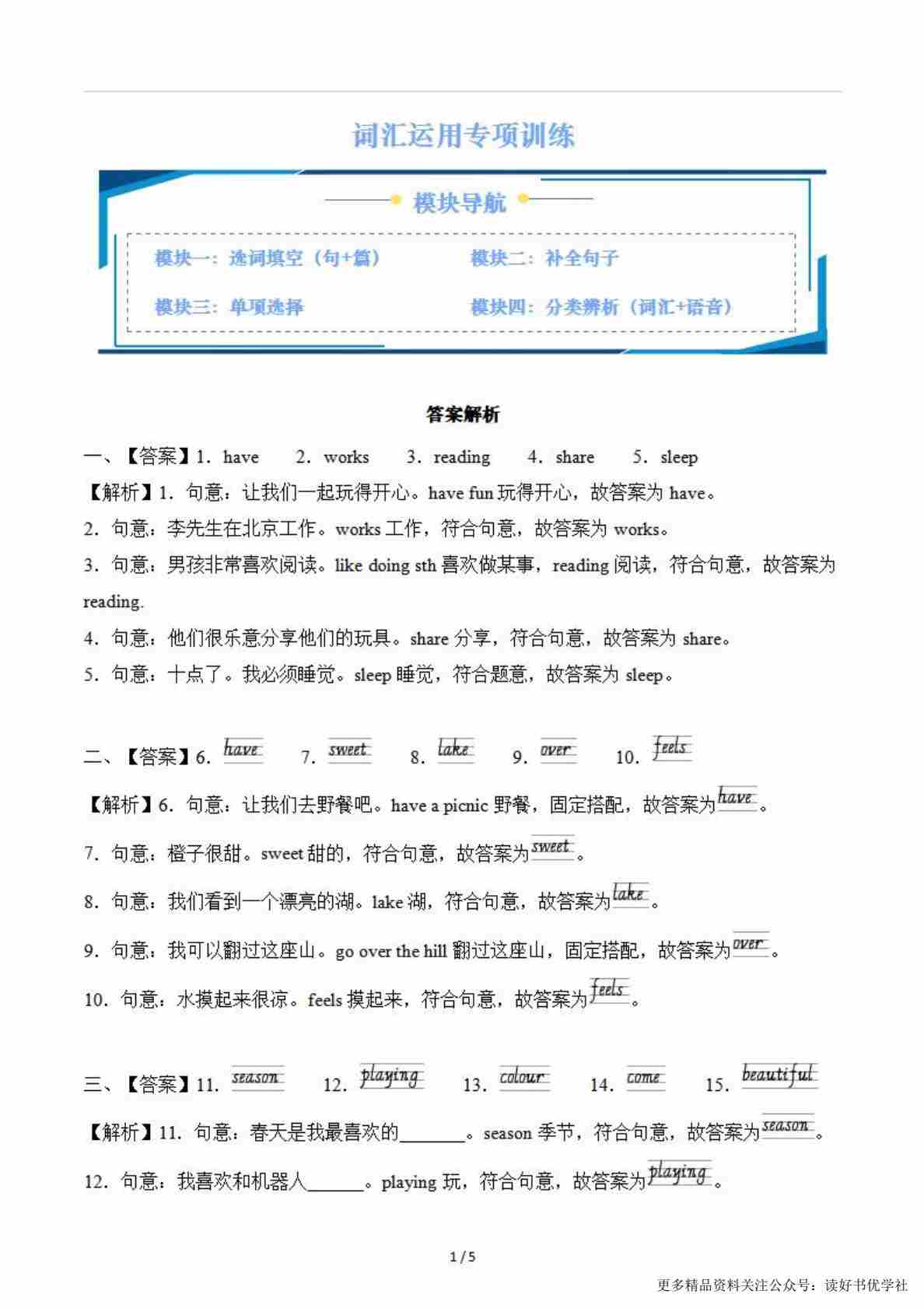 词汇运用专项训练(解析版)-沪教版(2024-2025年)三年级下册期末专项复习(小学英语)