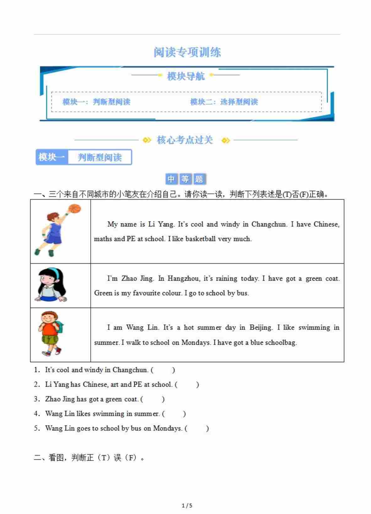 阅读专项训练(原卷版)-沪教版(2024-2025年)三年级下册期末专项复习(小学英语)