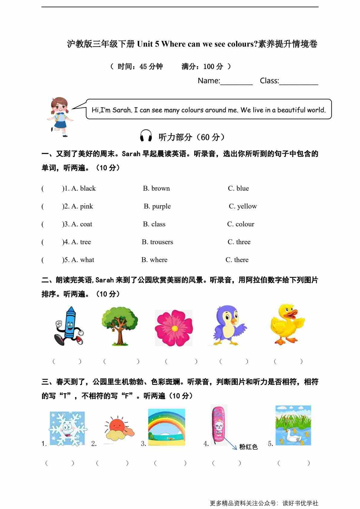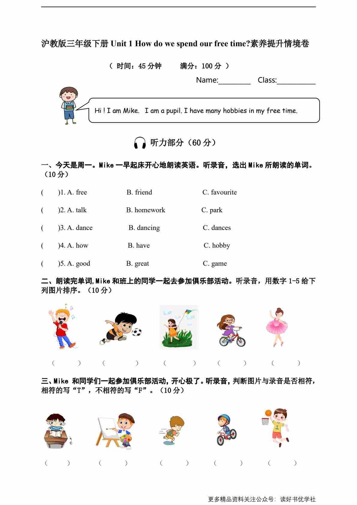 三 (下) 英语沪教版Unit1(课时练)同步备课系列(1)