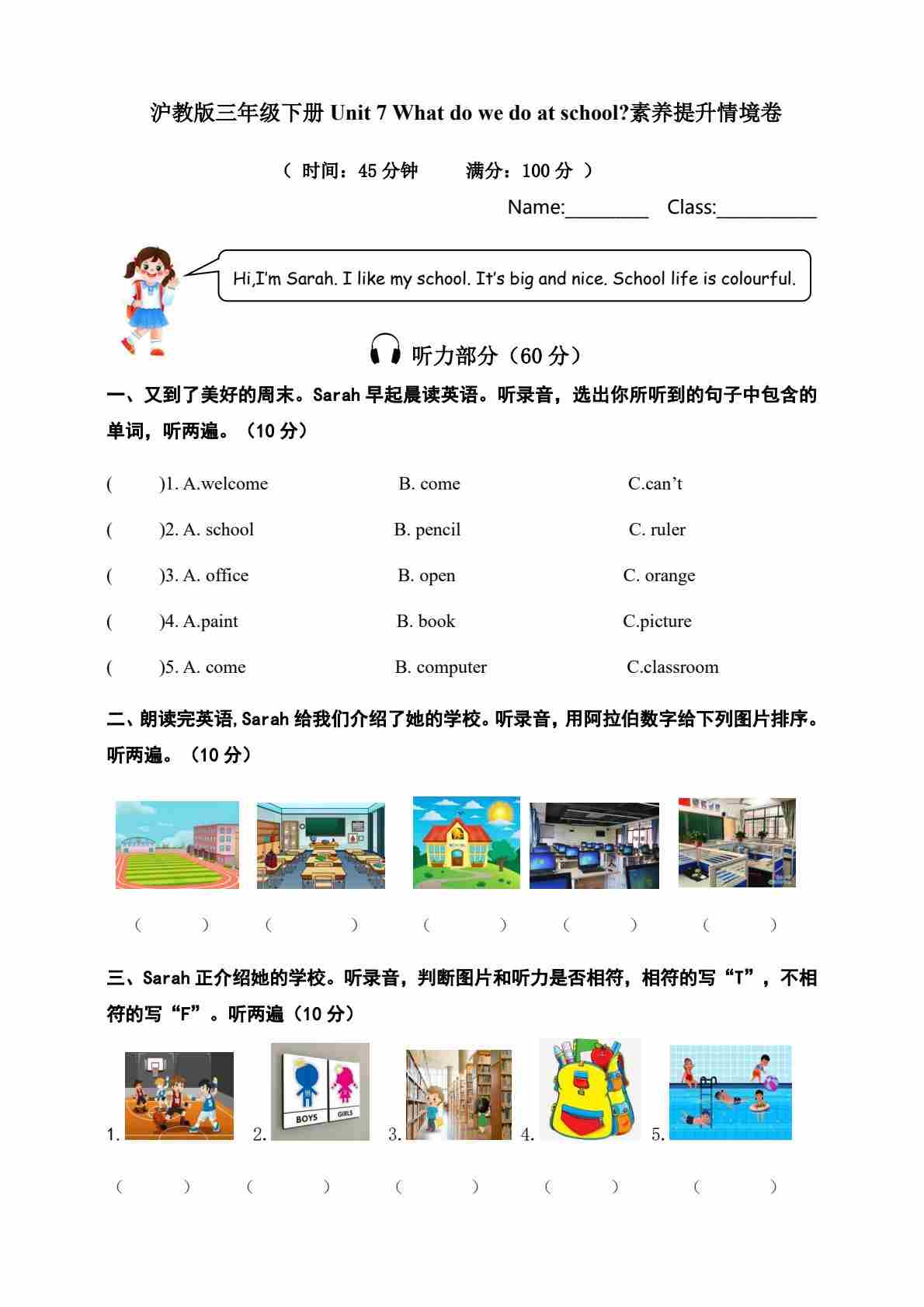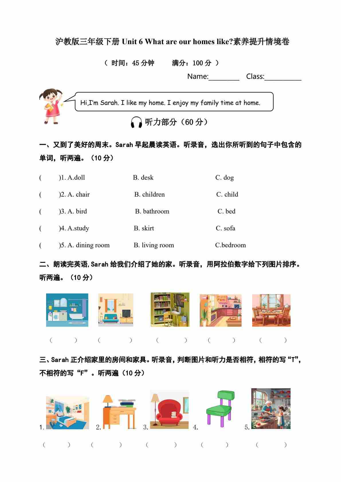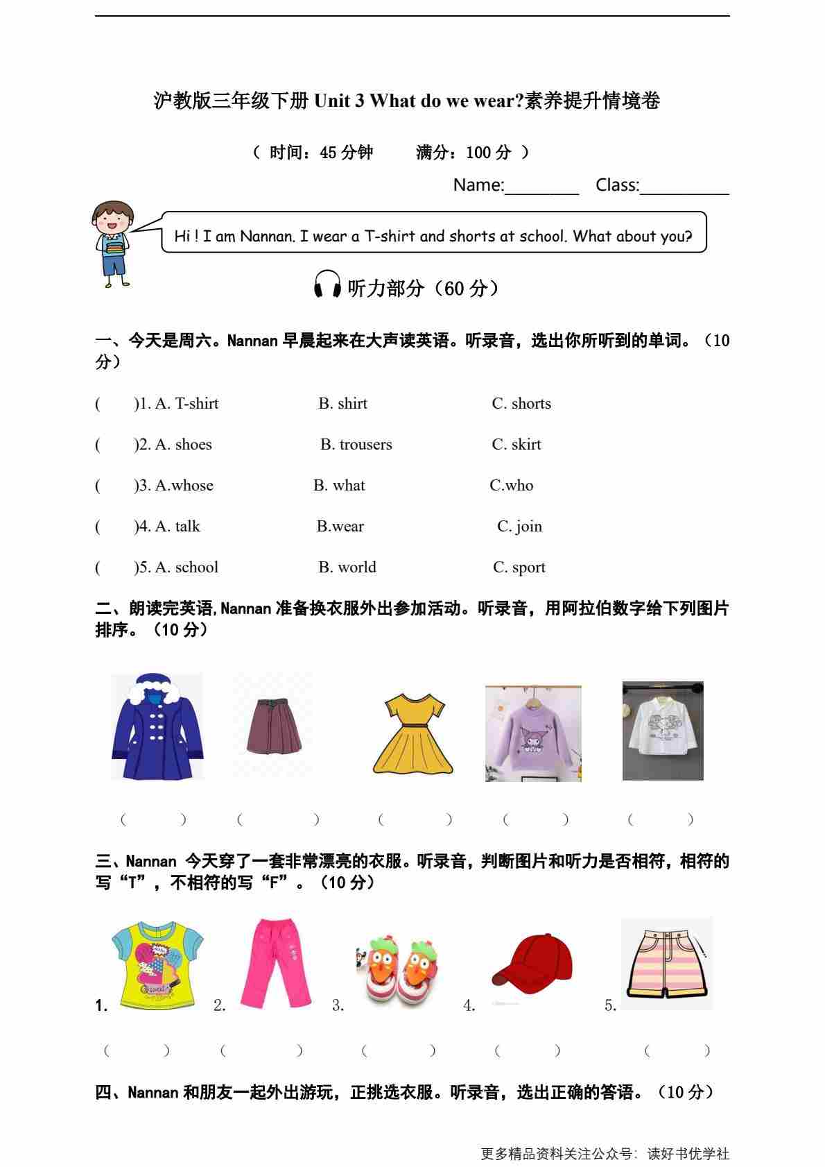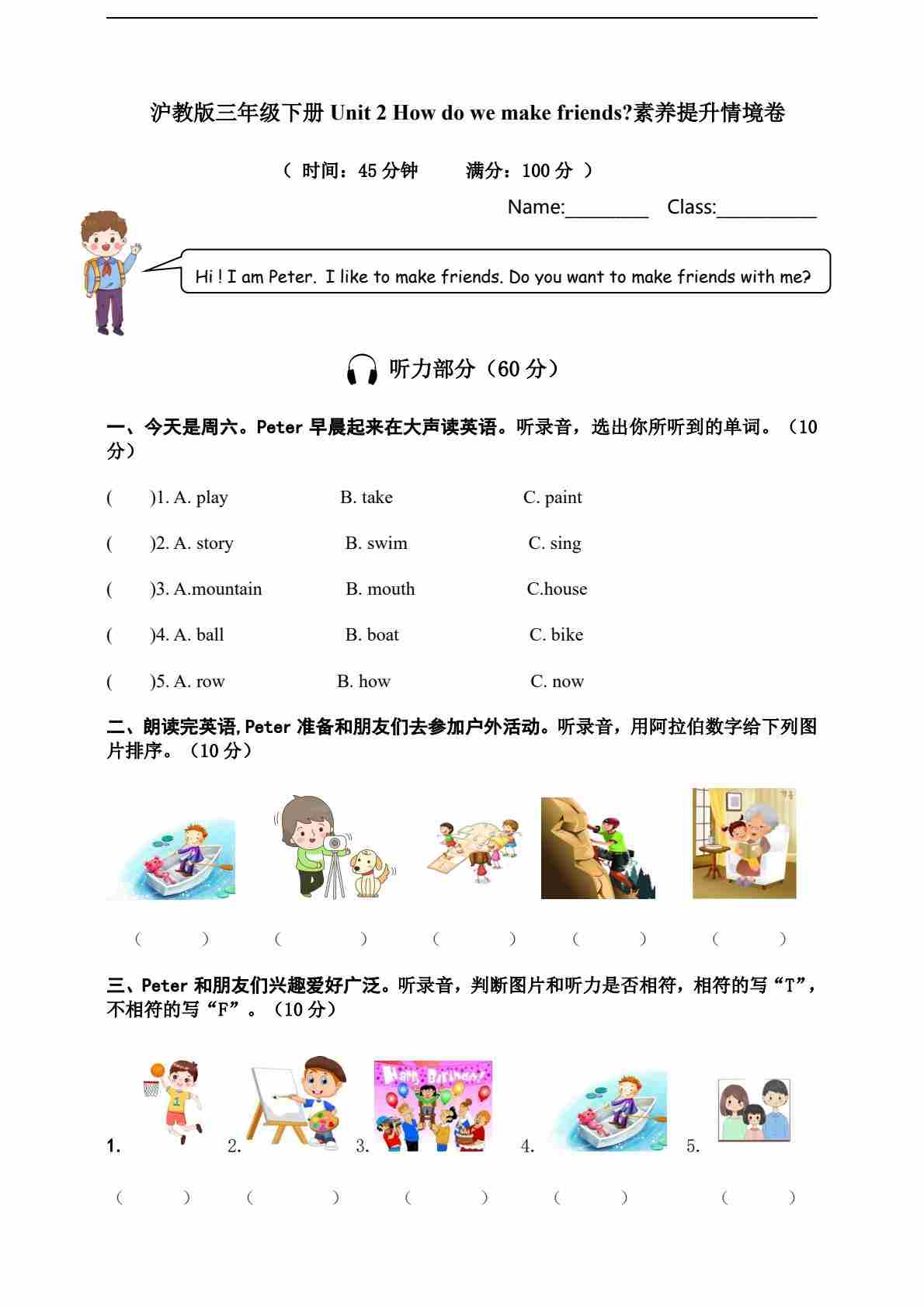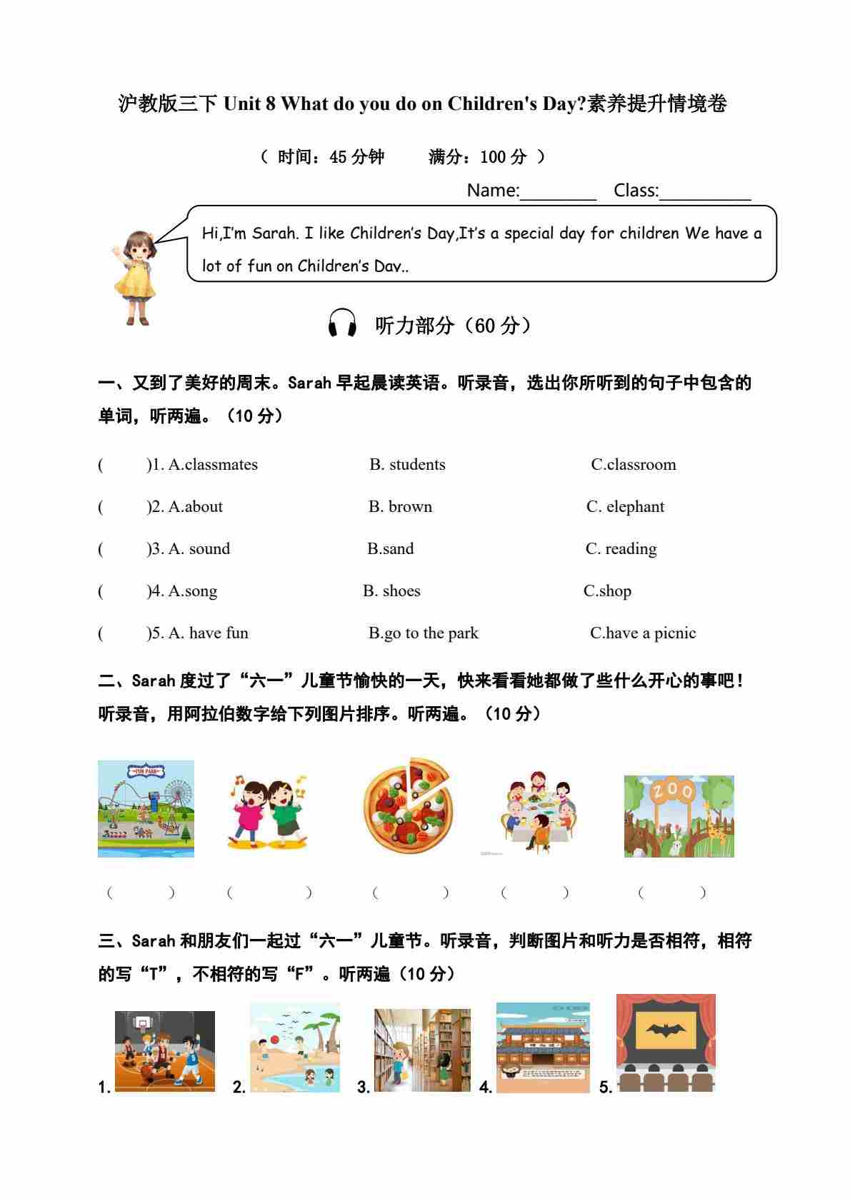 Unit 8 What do you do on Children's Day素养提升情境卷(含听力音频及答案,听力原文)
