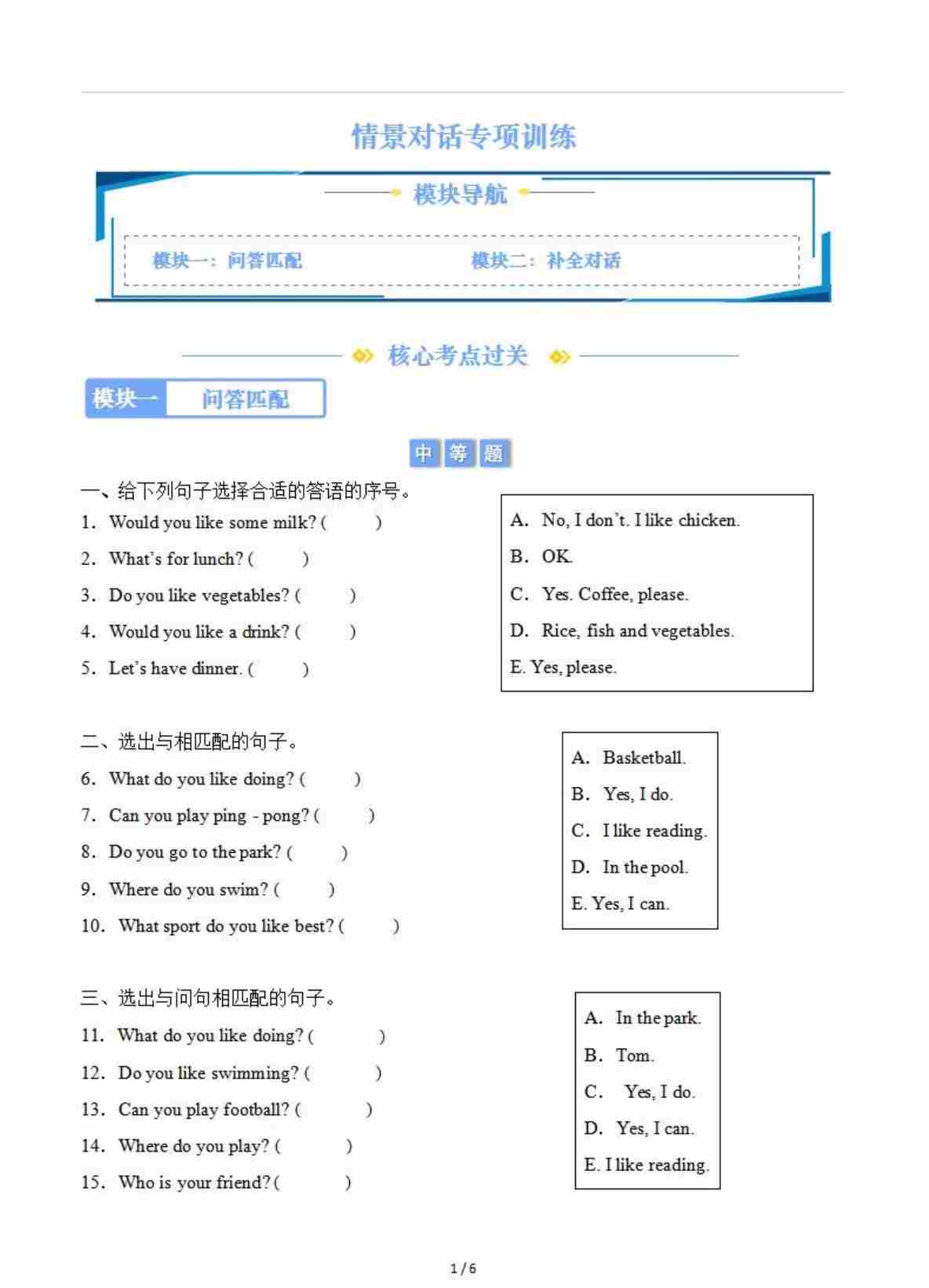 情景对话专项训练(原卷版)-沪教版(2024-2025年)三年级下册期末专项复习(小学英语)