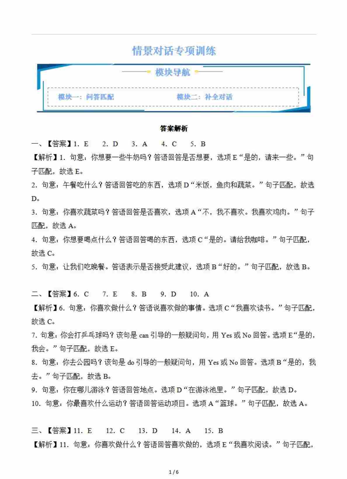 情景对话专项训练(解析版)-沪教版(2024-2025年)三年级下册期末专项复习(小学英语)