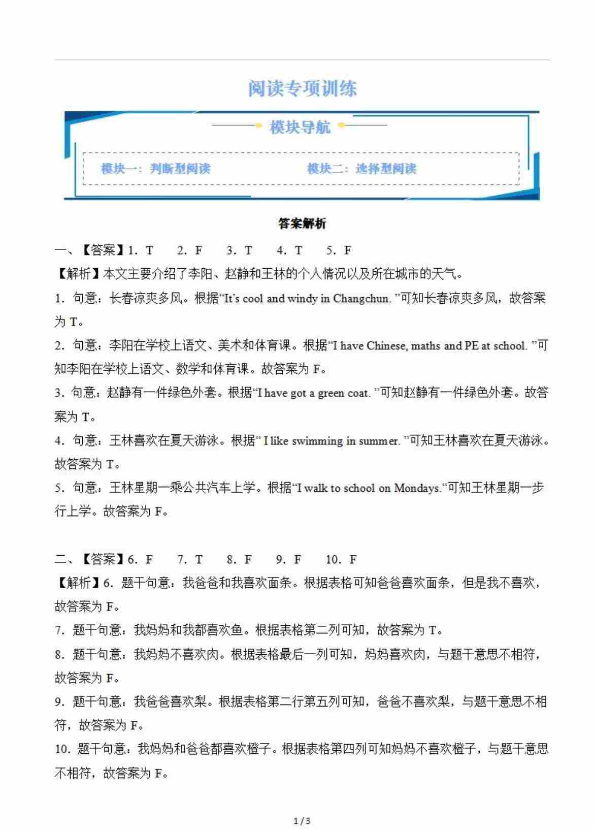 阅读专项训练(解析版)-沪教版(2024-2025年)三年级下册期末专项复习(小学英语)