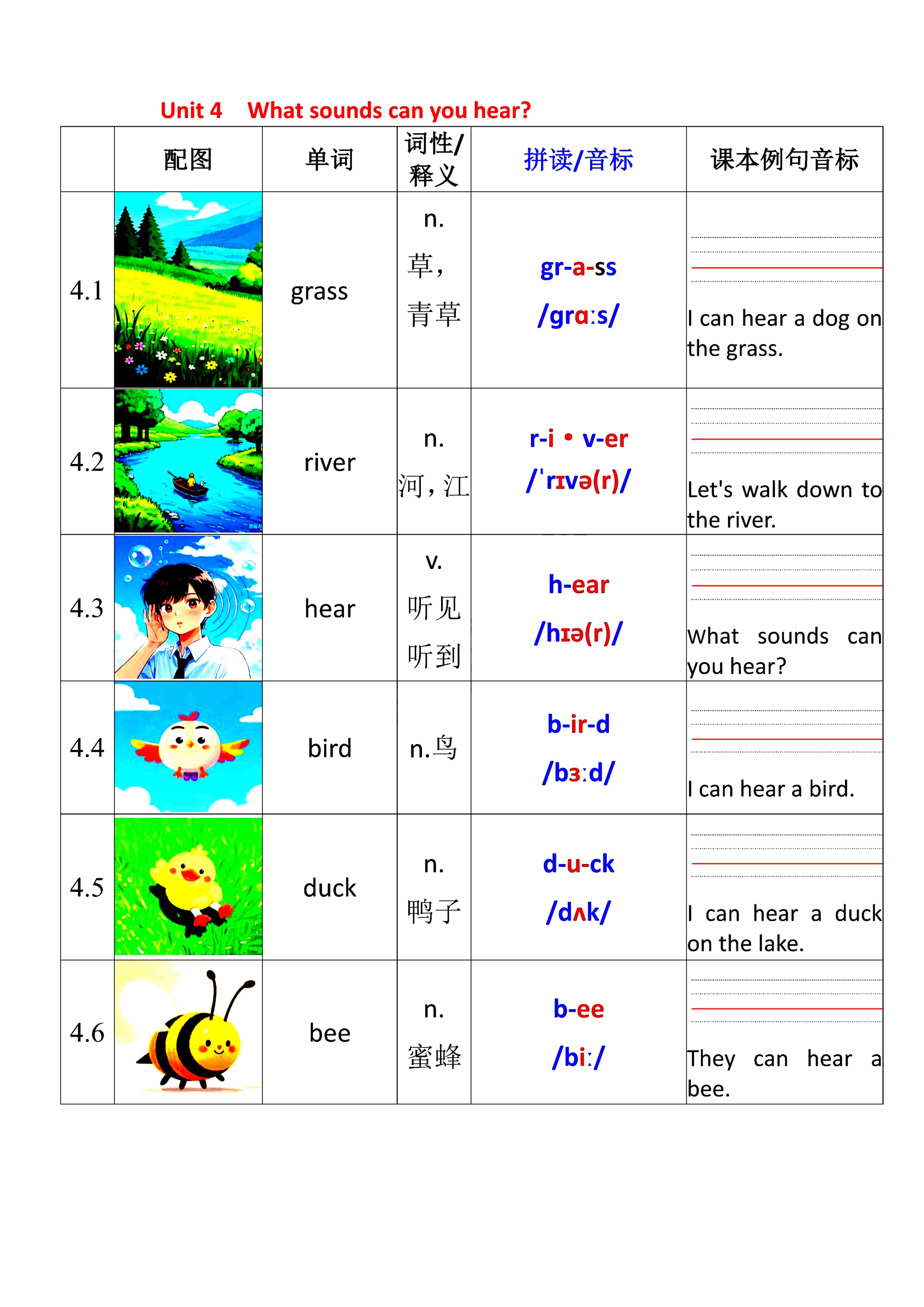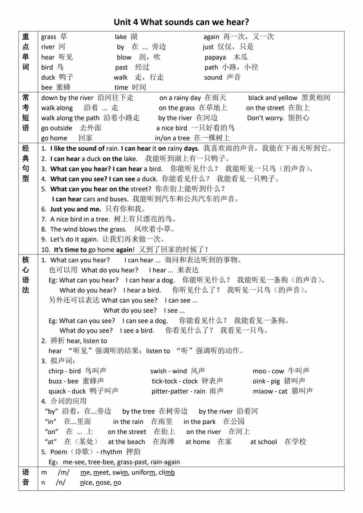 三(下)英语牛津沪教知识清单Unit 4 What sounds can we hear
