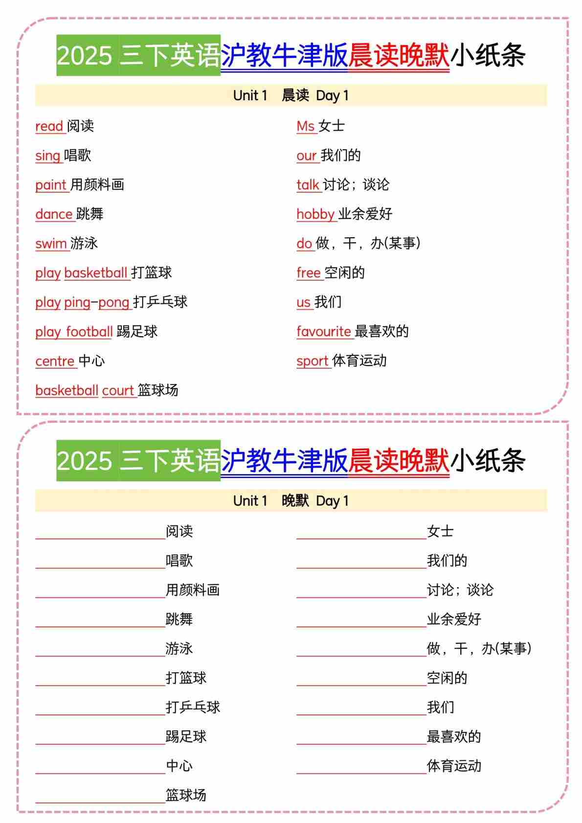 三(下)英语牛津沪教版【2025春-1-8单元知识点】