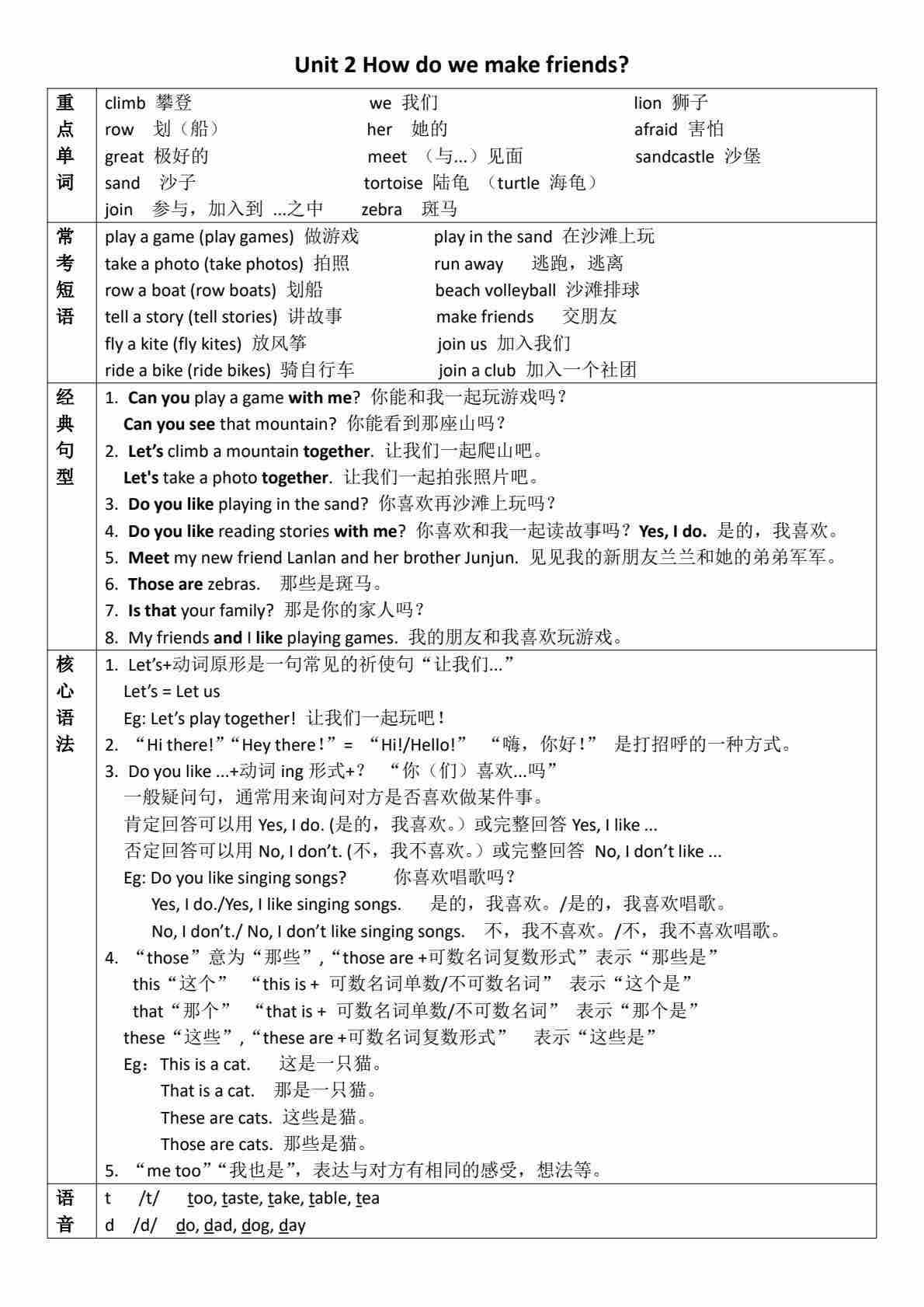 三(下)英语牛津沪教知识清单Unit 2 How do we make friends