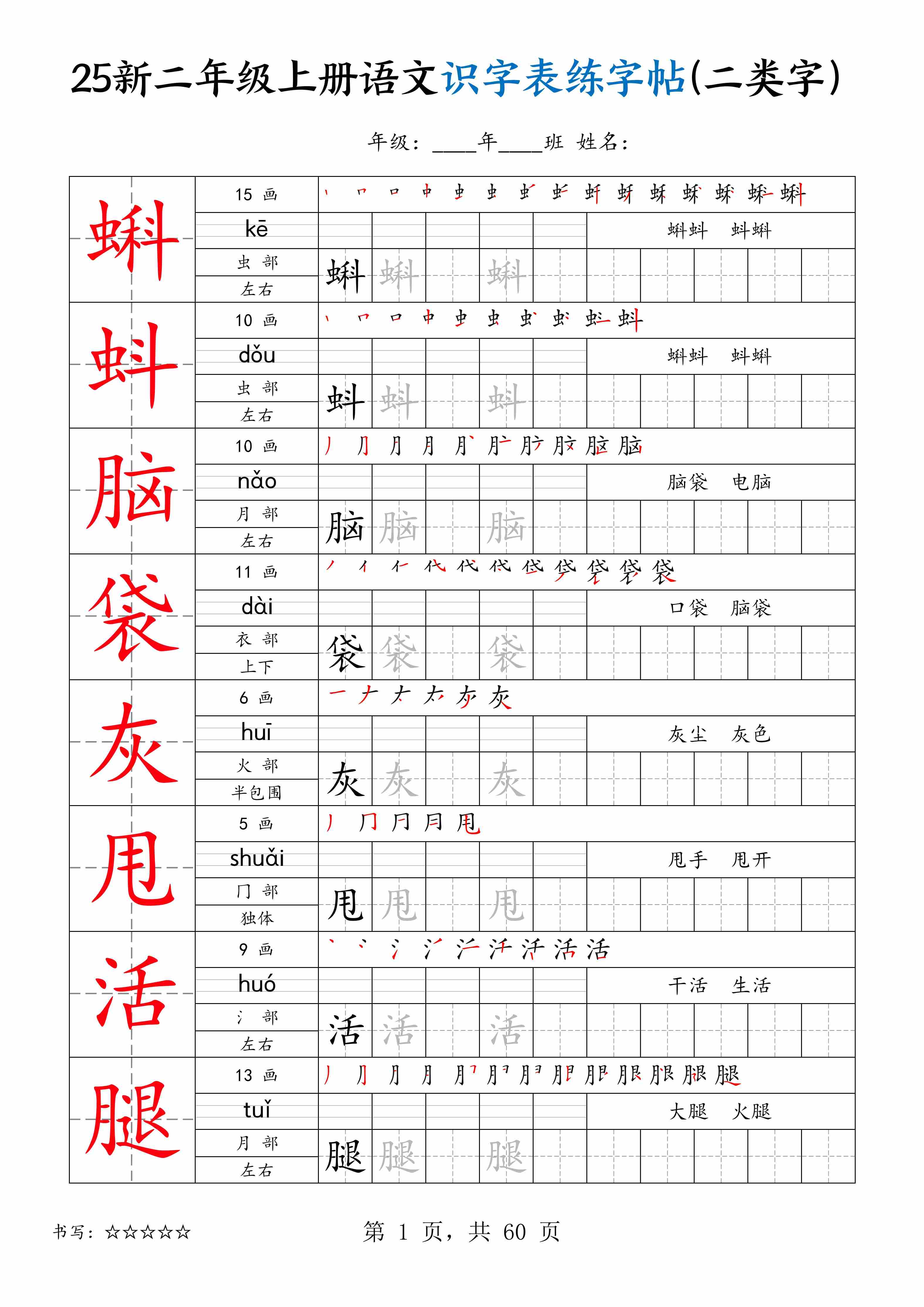 【25新二上语文识字表练字帖(二类字)60页 (1)