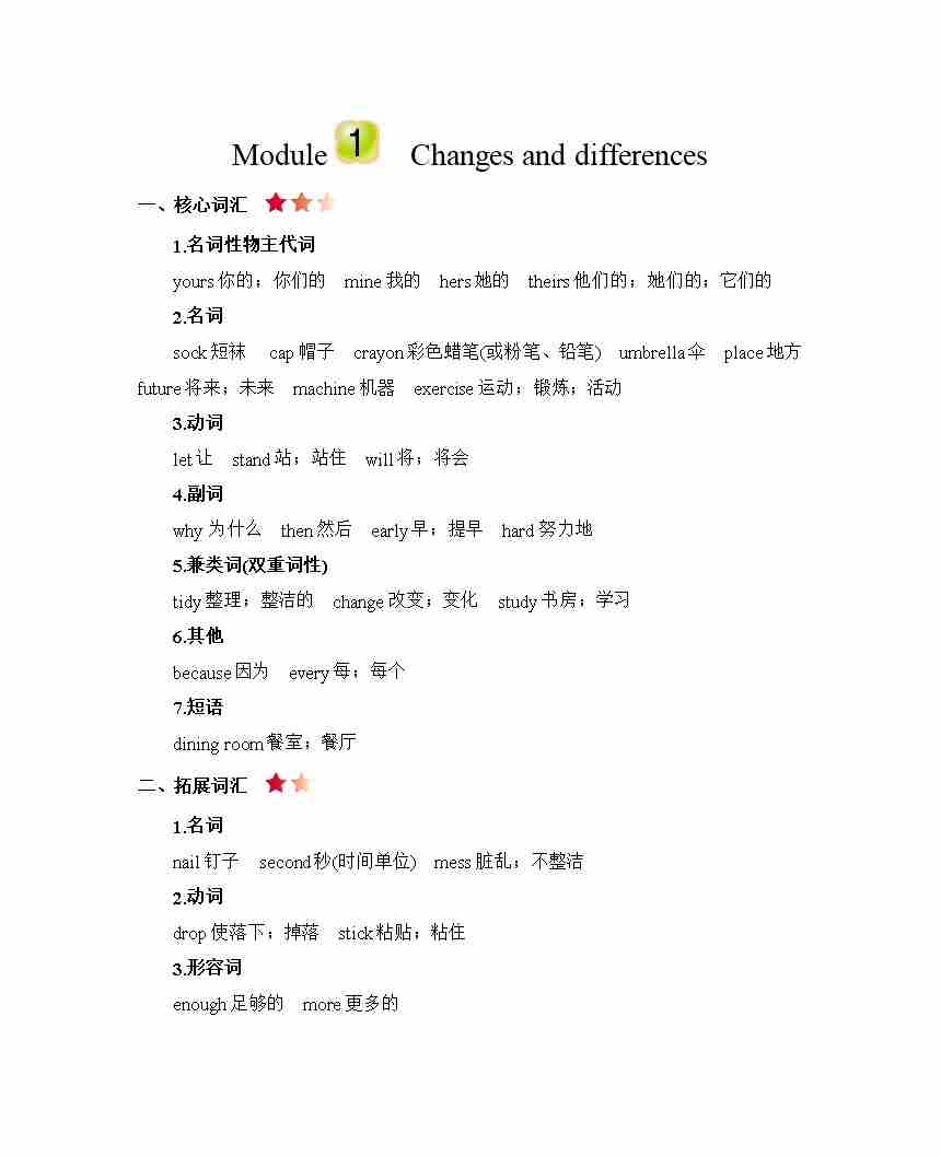 五年级下册英语素材-Module 1 Changes and differences知识清单 牛津上海版(三起)