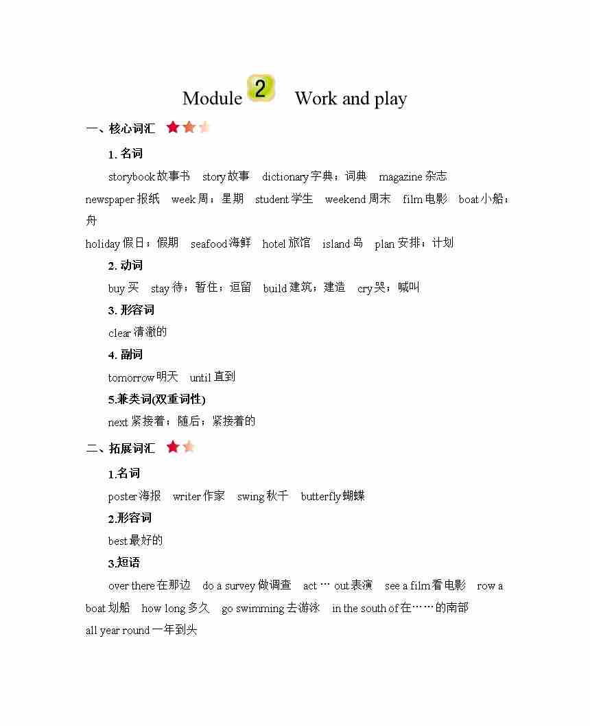 五年级下册英语素材-Module 2 Work and play知识清单 牛津上海版(三起)