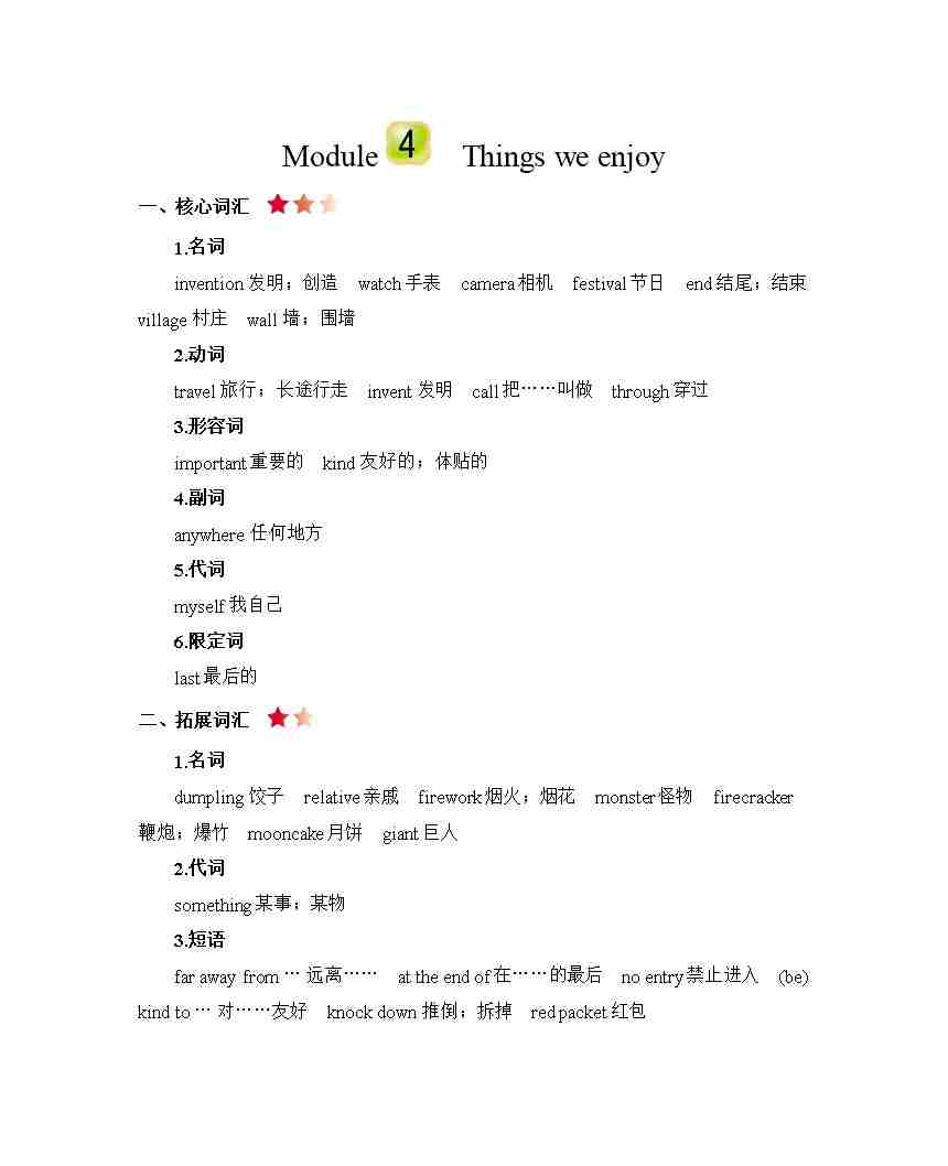 五年级下册英语素材-Module 4 Things we enjoy 知识清单 牛津上海版(三起)