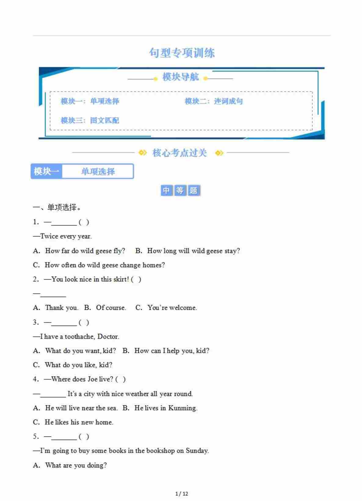 句型专项训练(原卷版)-沪教牛津版(深圳用)五年级下册期末专项复习(小学英语)