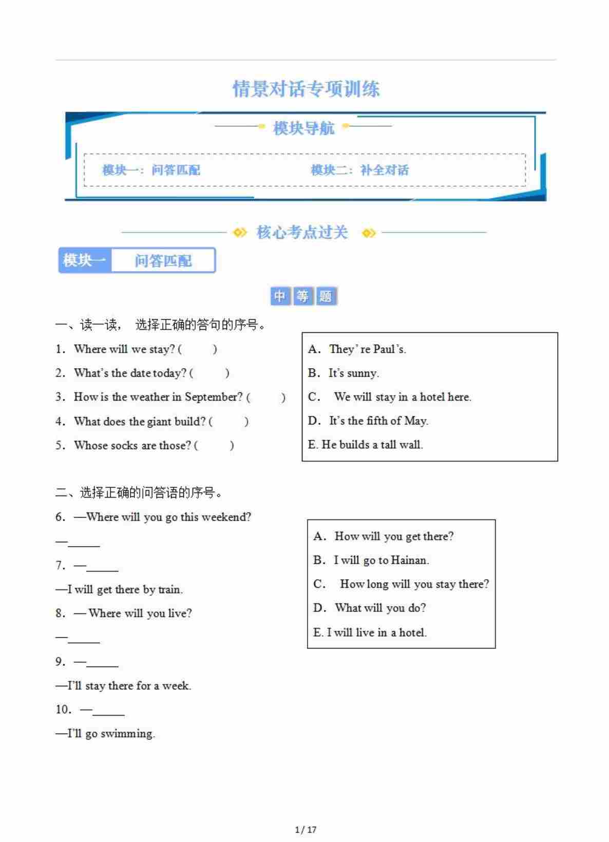情景对话专项训练(原卷版)-沪教牛津版(深圳用)五年级下册期末专项复习(小学英语)