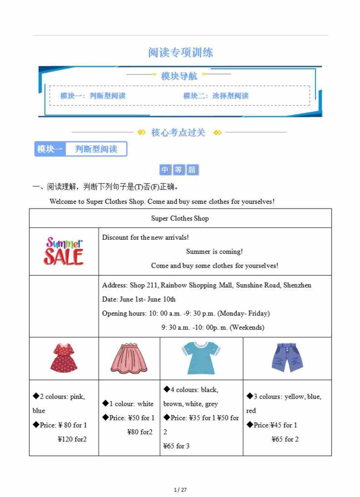 阅读专项训练(原卷版)-沪教牛津版(深圳用)五年级下册期末专项复习(小学英语)