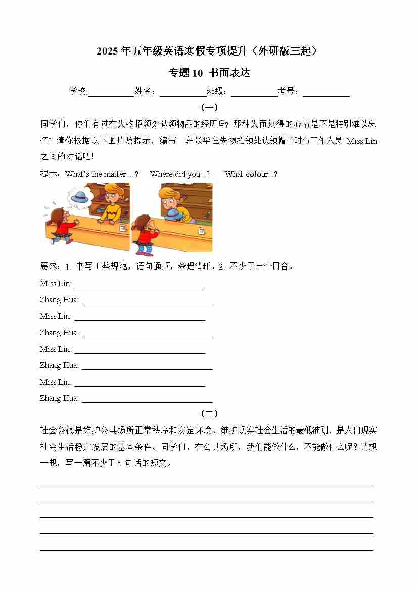 ①寒假复习-专题10 书面表达(学生版)-2025年五年级英语寒假衔接讲练 (外研版三起)