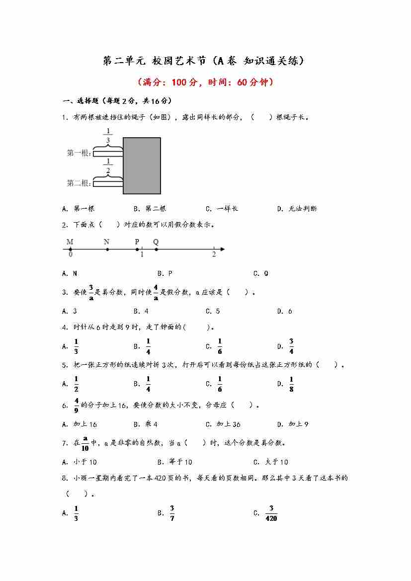 【单元检测】第二单元 校园艺术节(A卷 知识通关练)五年级下册数学单元AB卷(青岛版,六三制)