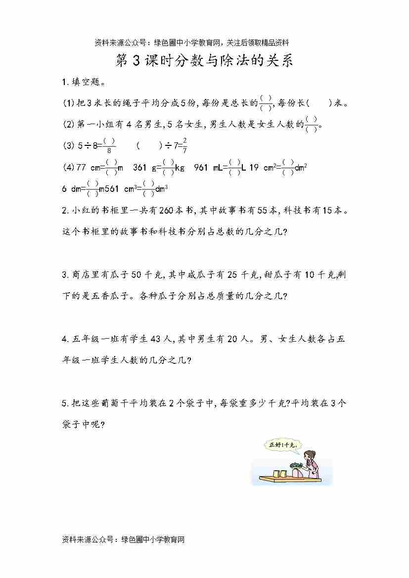 【青岛63制】五(下)数学课时练:2.3 分数与除法的关系