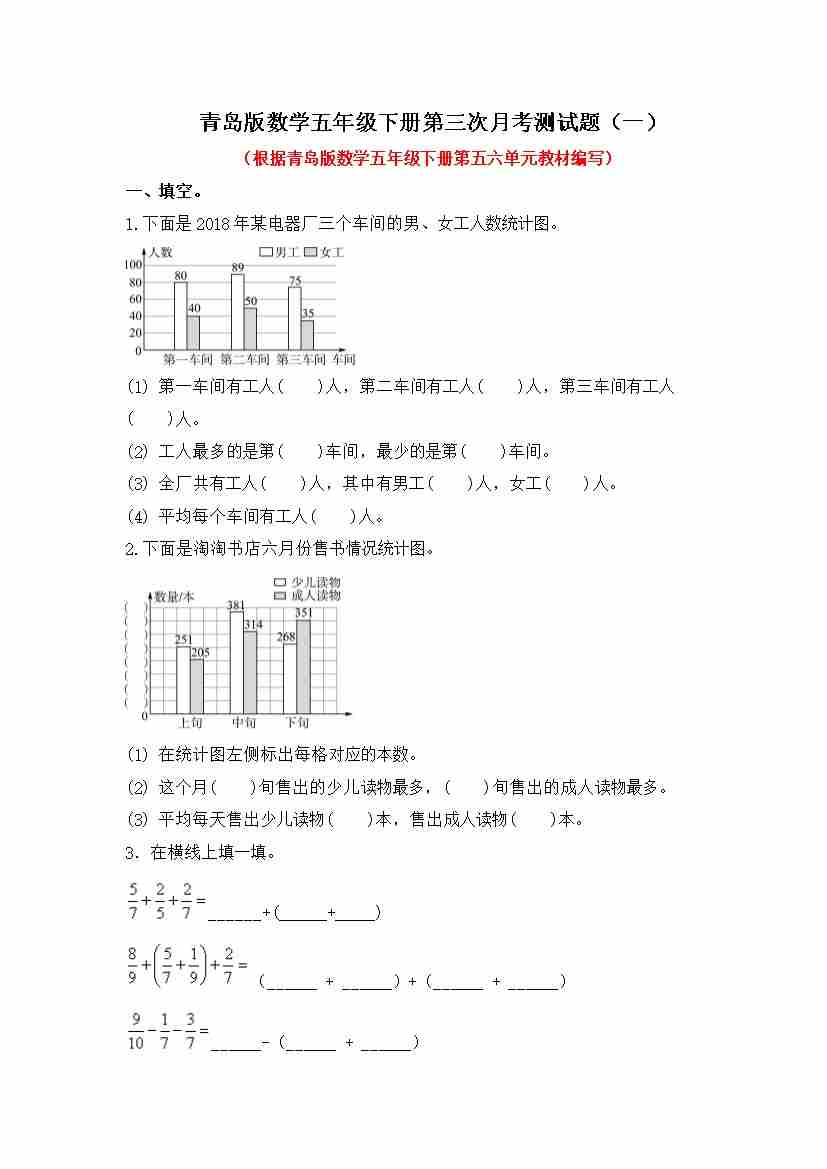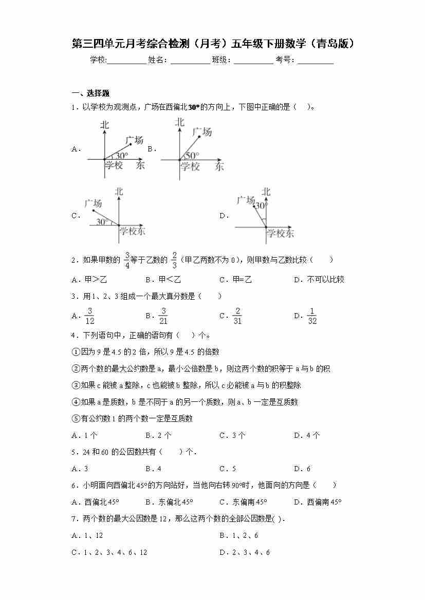 第三四单元月考综合检测(月考)青岛版五年级下册数学