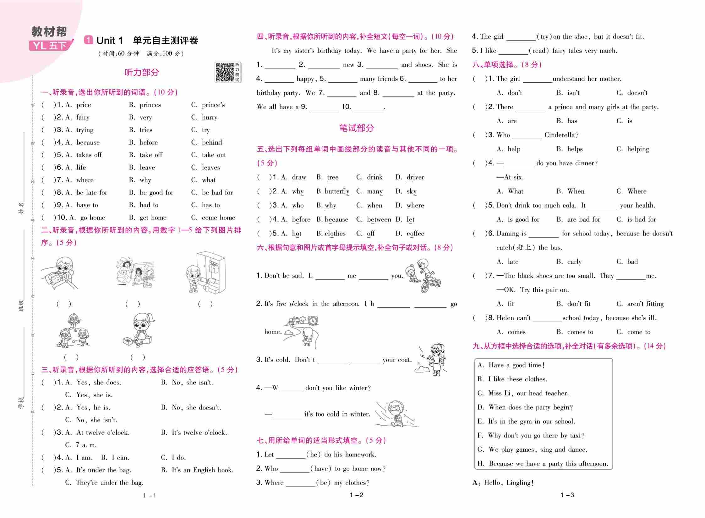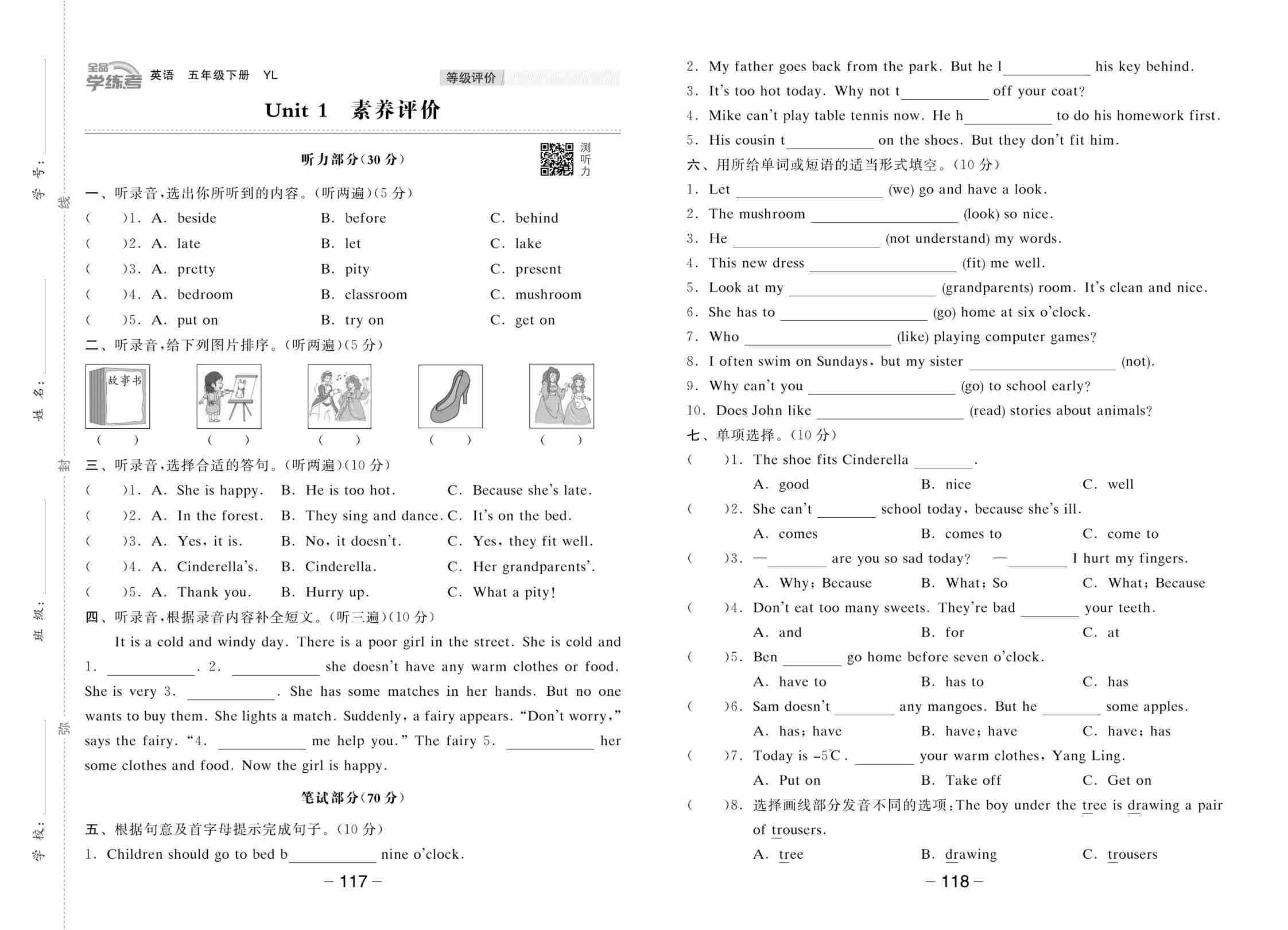五(下)英语试卷《全品学练考》译林版-素养卷