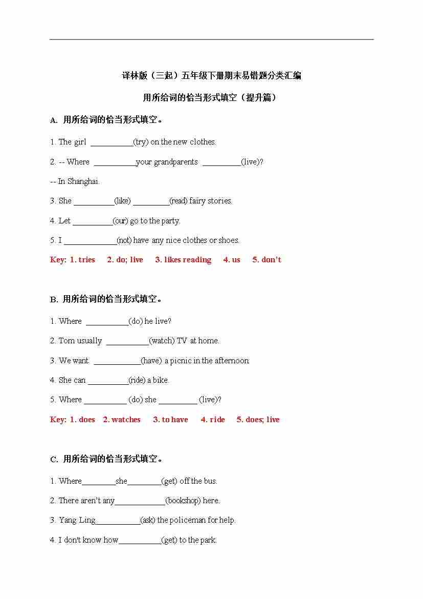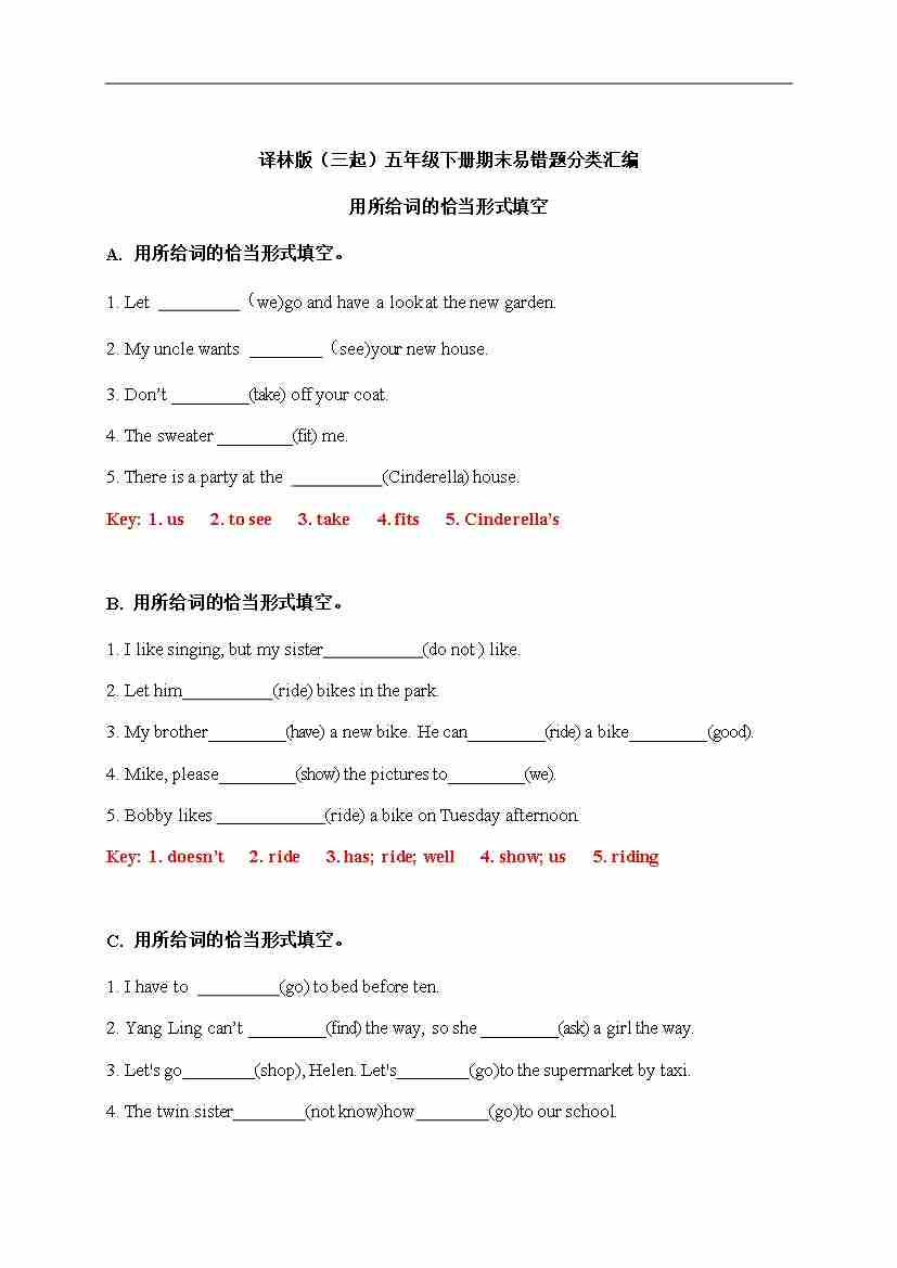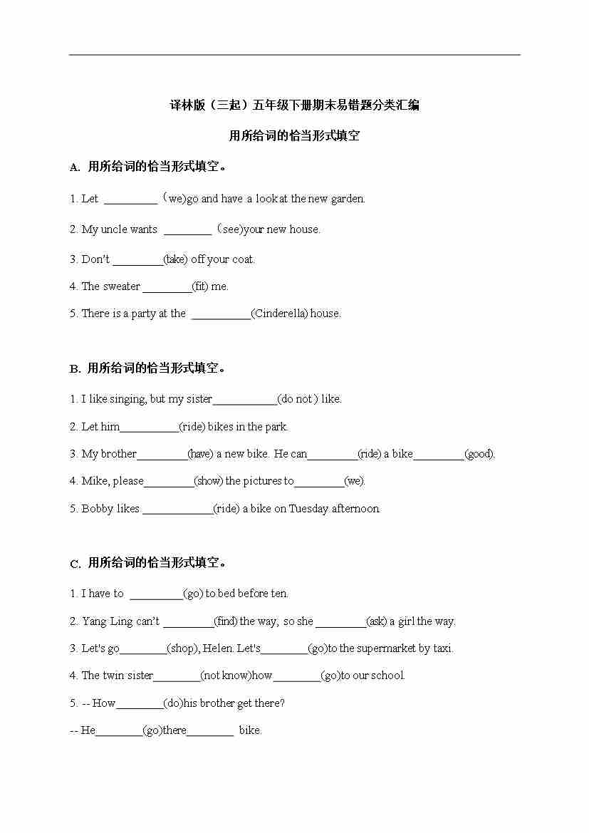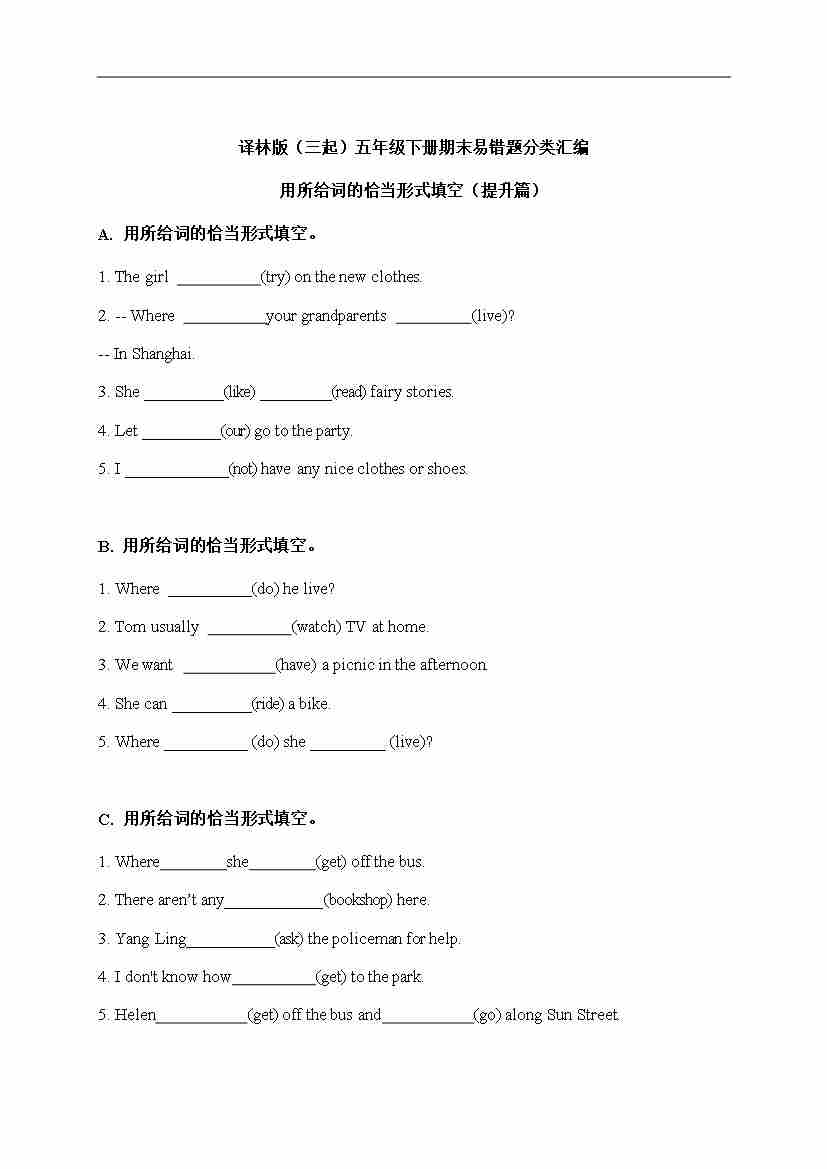 【期末易错题分类汇编】用所给词的恰当形式填空 译林版(三起) 五年级下册