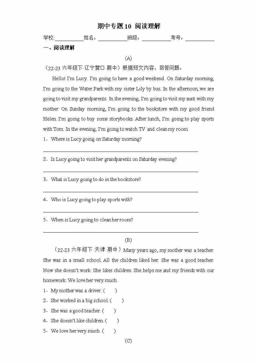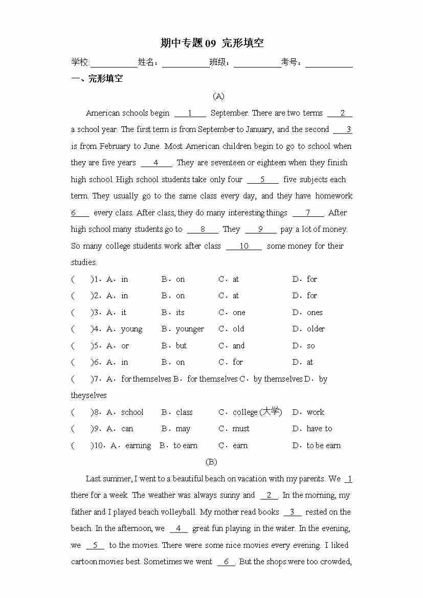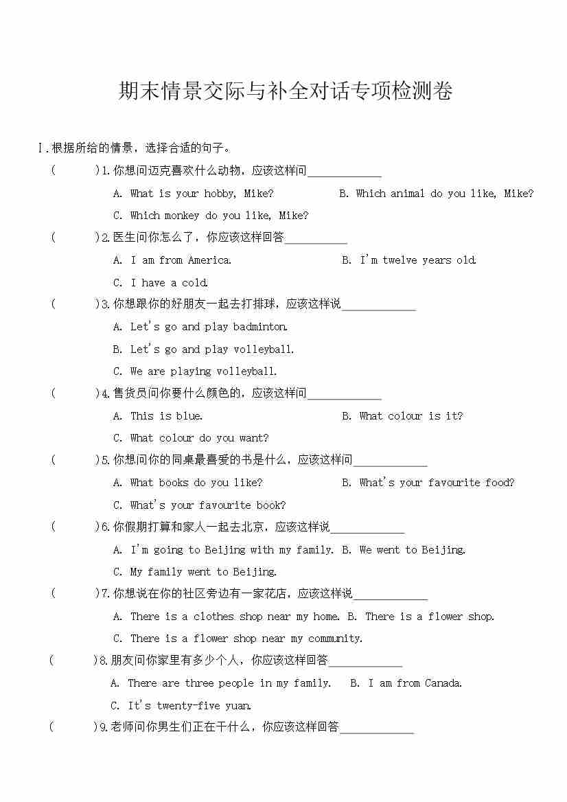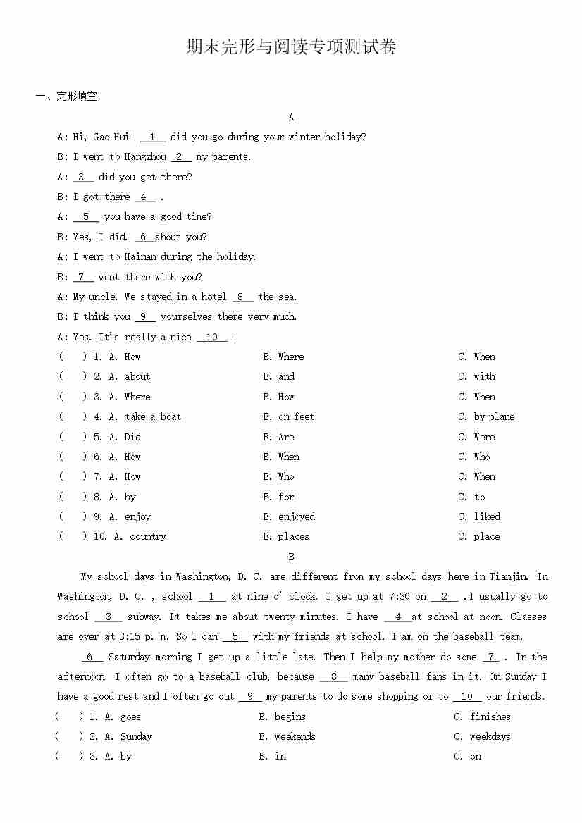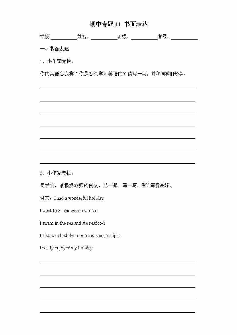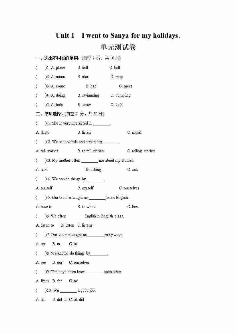 Unit 1 I went to Sanya for my holidays (单元测试)