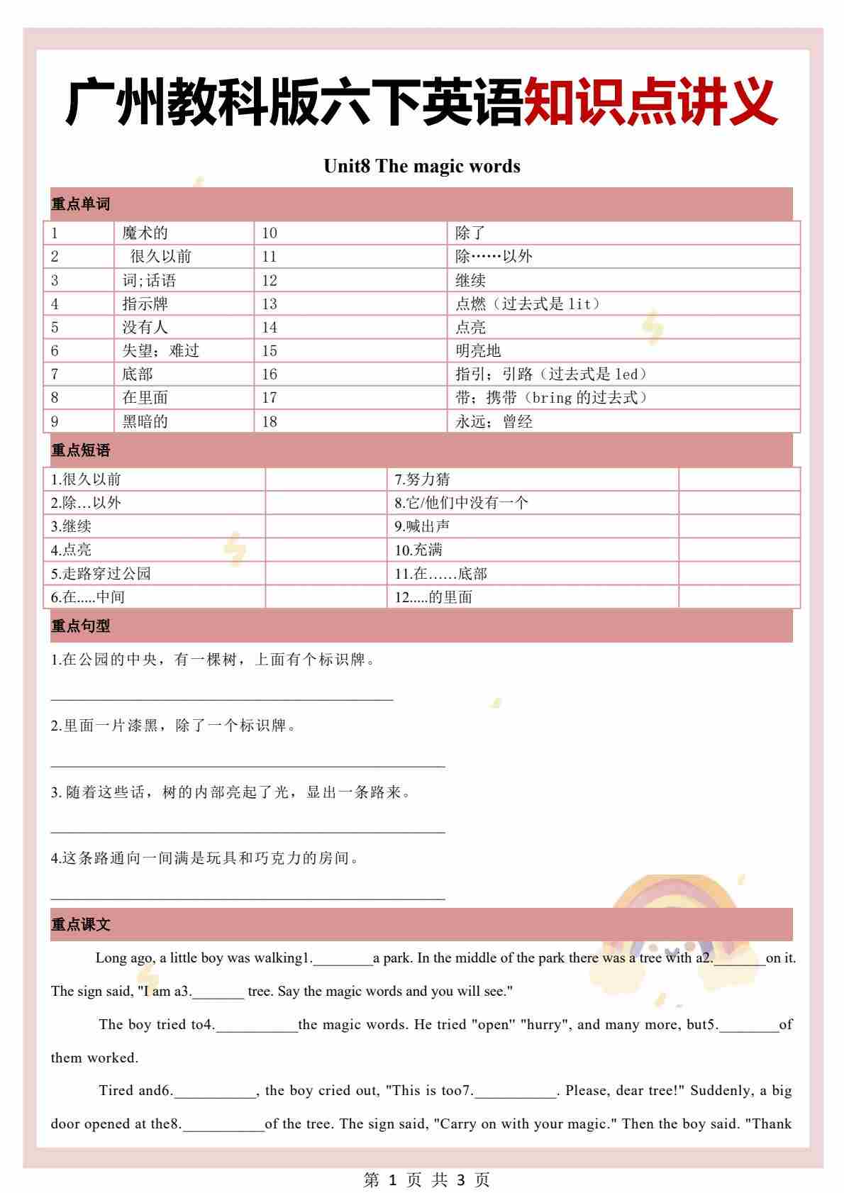 六年级下册英语知识点梳理-Unit8The magic words 教科版(广州)(含答案)