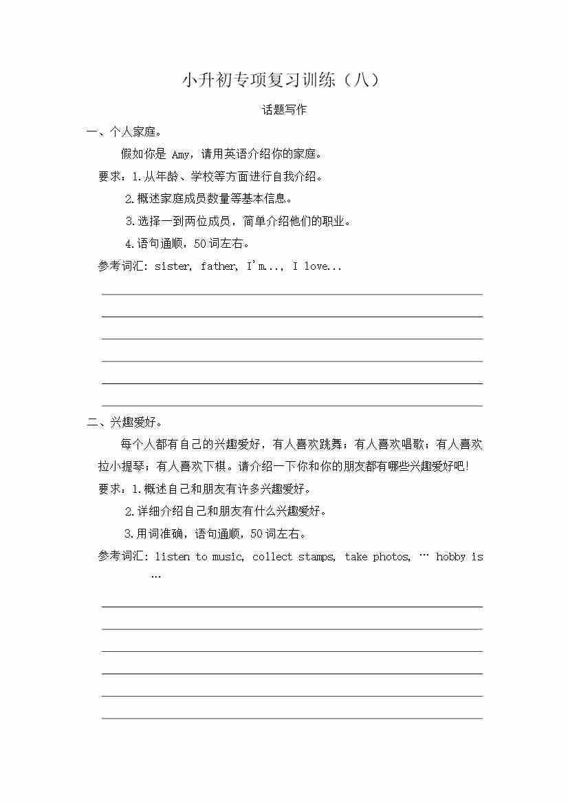 小升初 话题写作(专项训练)
