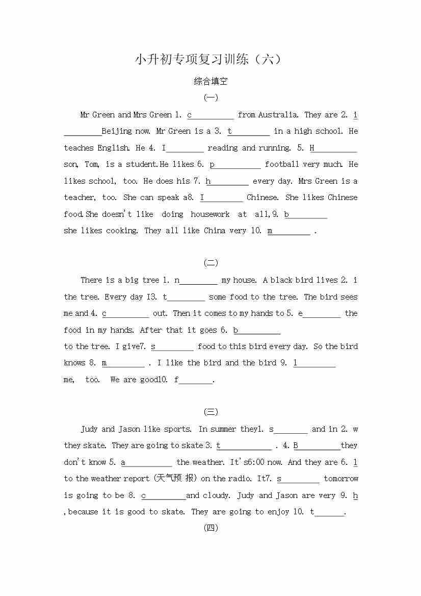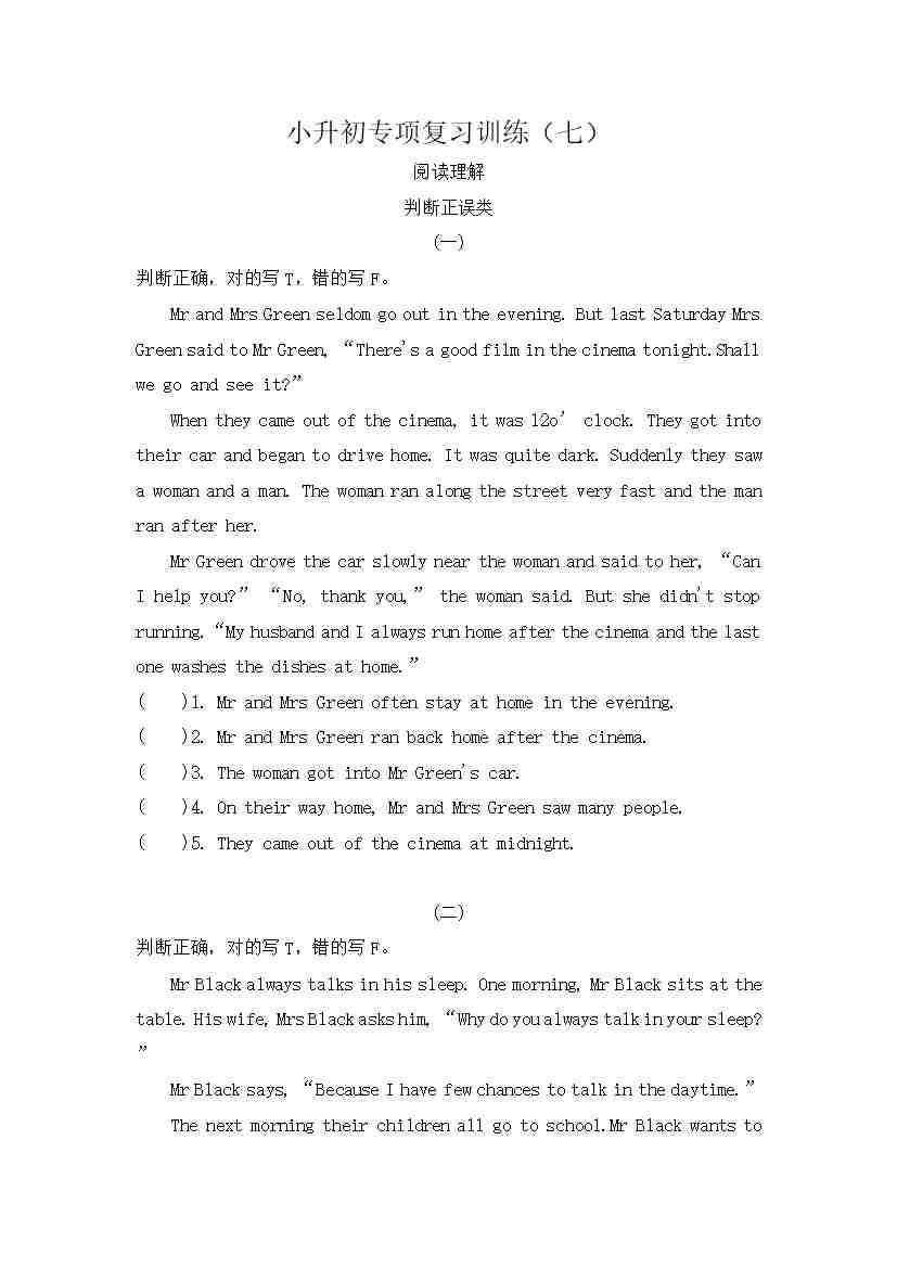 小升初复习 阅读理解(专项训练)