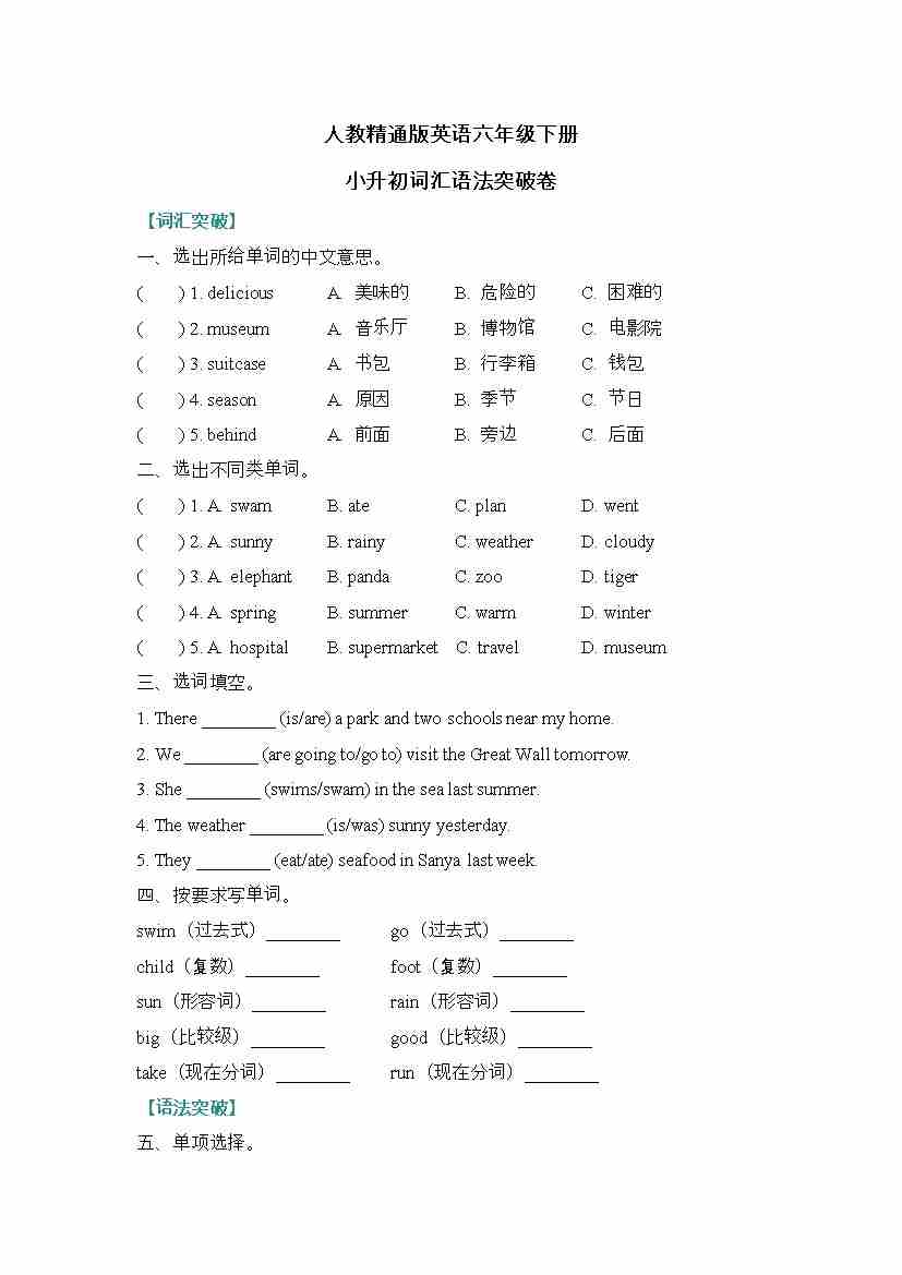 小升初词汇语法突破卷(专项训练)