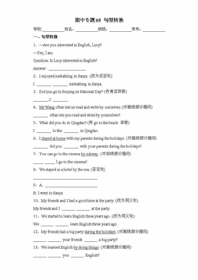 期中专题05 句型转换