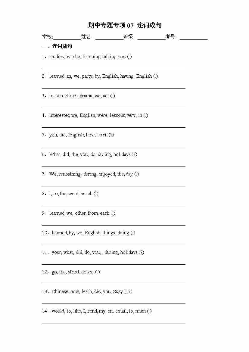 期中专题07 连词成句