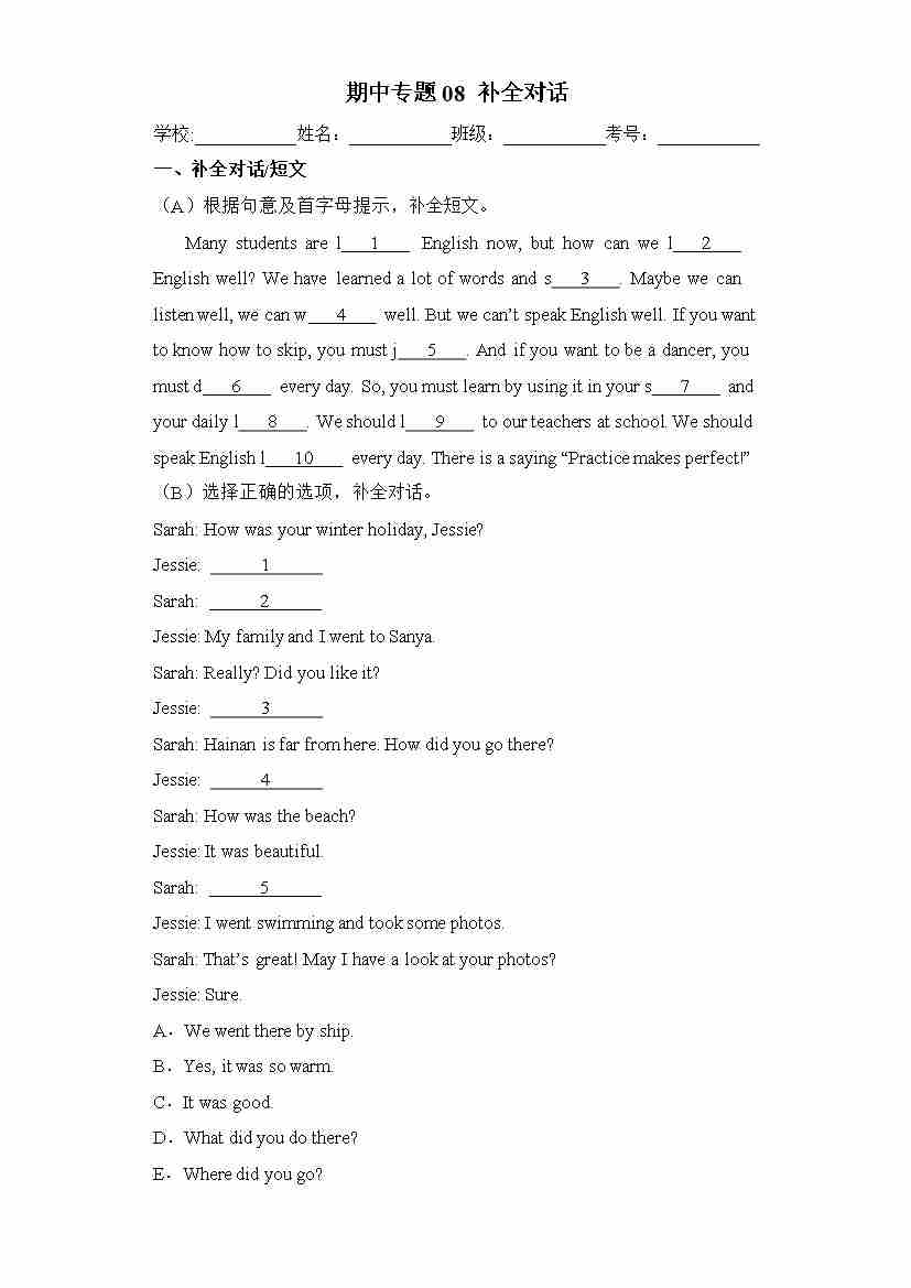 期中专题08 补全对话