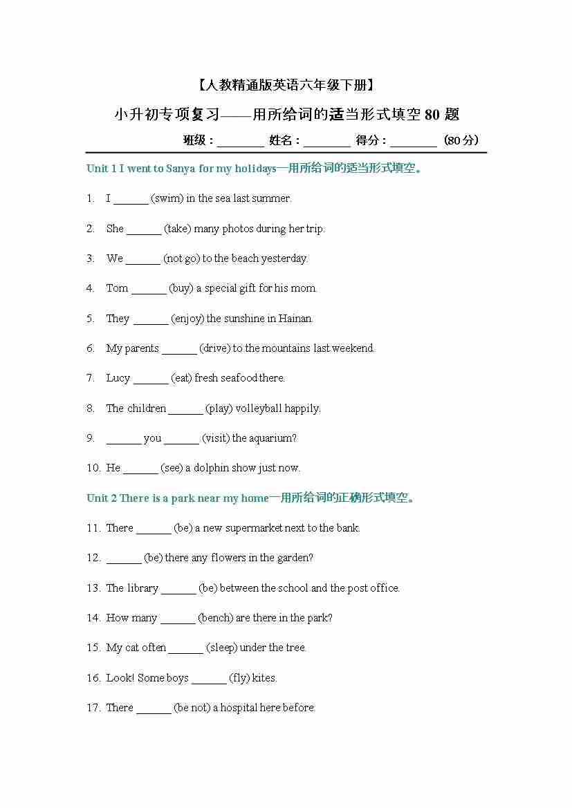 用所给词的适当形式填空80题(专项训练)