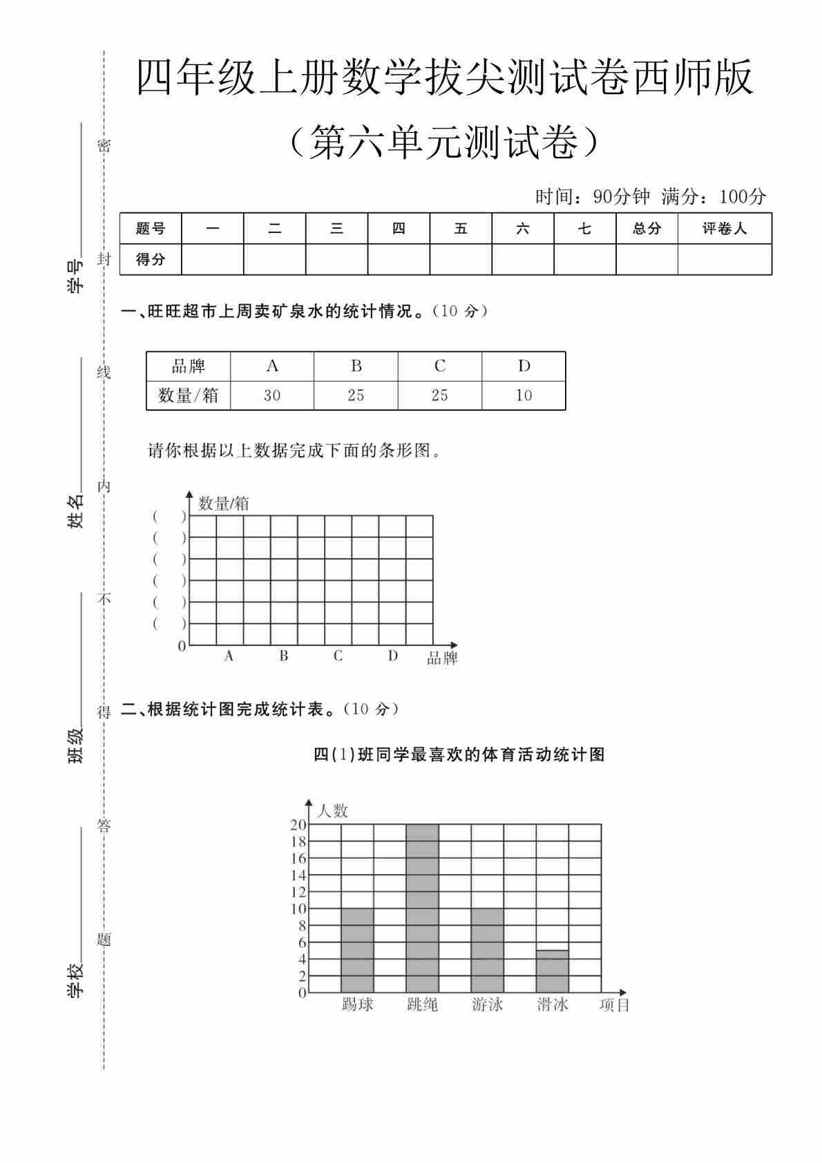 四上苏教版数学【第七单元测试卷1】