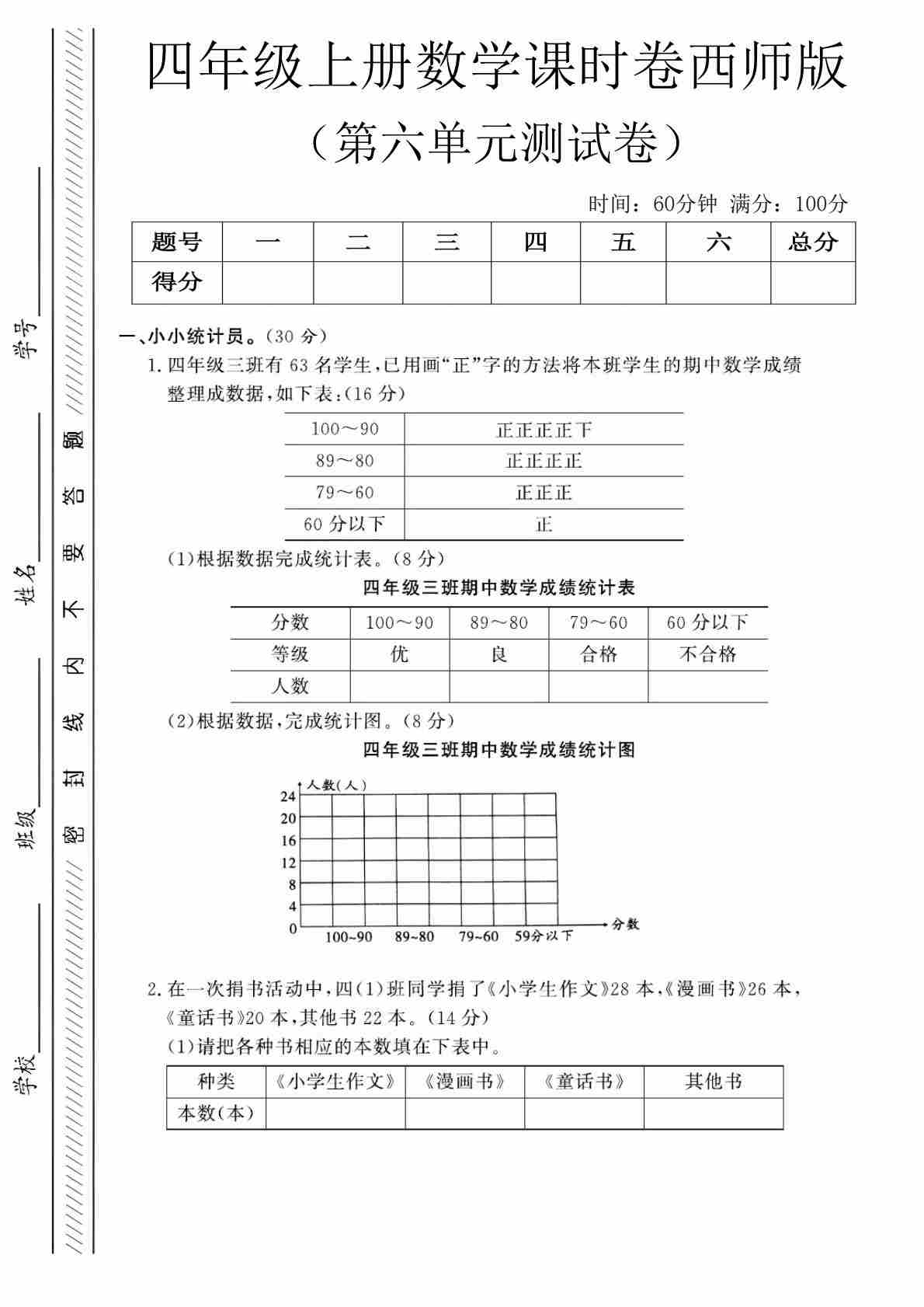 四上西师版数学【第六单元课时卷】