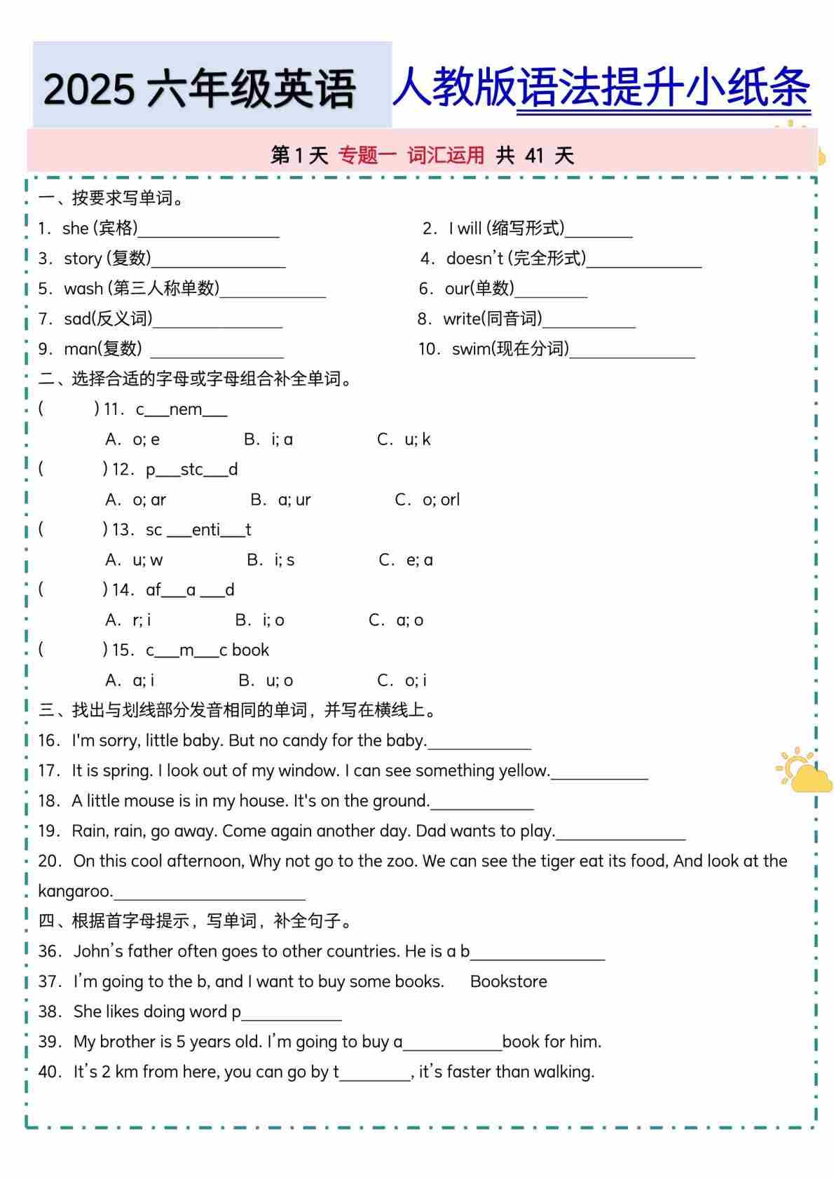 六年级人教寒假语法小纸条【空白】