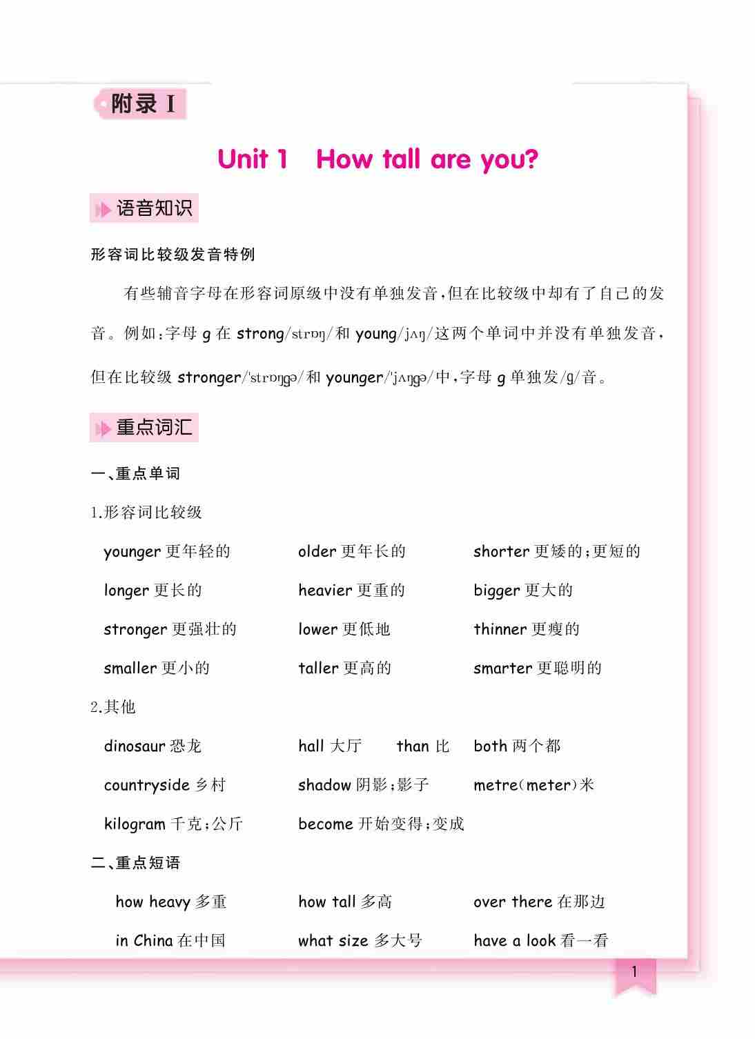 六下人教pep版单元知识清单