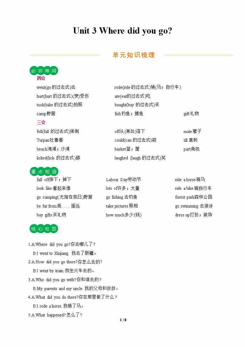 Unit 3 Where did you go? 重难点讲练(含答案)