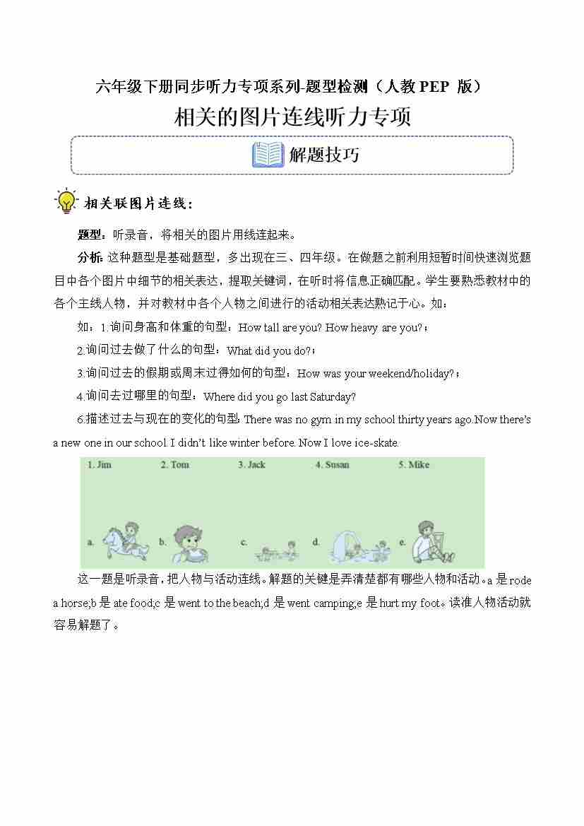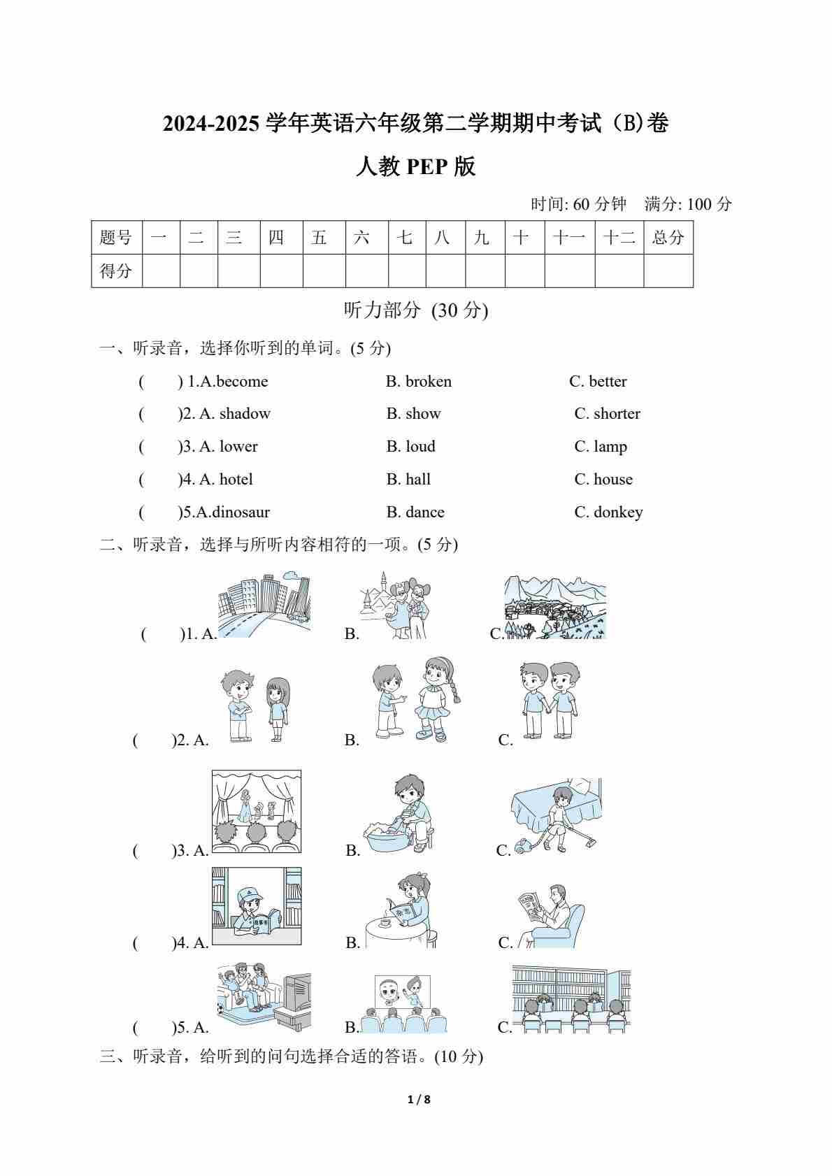 六(下)英语人教版PEP2024-2025学年第二学期期中考试(AB)卷听力