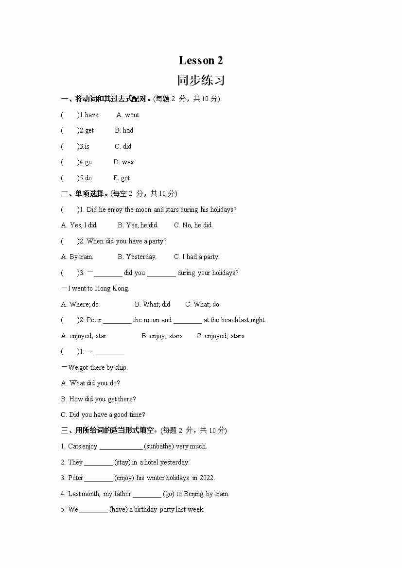Unit 1 I went to Sanya for my holidays Lesson 2 (同步练习) 人教精通版英语六年级下册