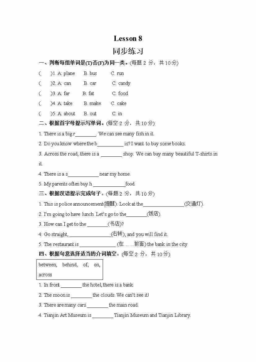Unit 2 There is a park near my home. Lesson 8 (同步练习) 人教精通版英语六年级下册