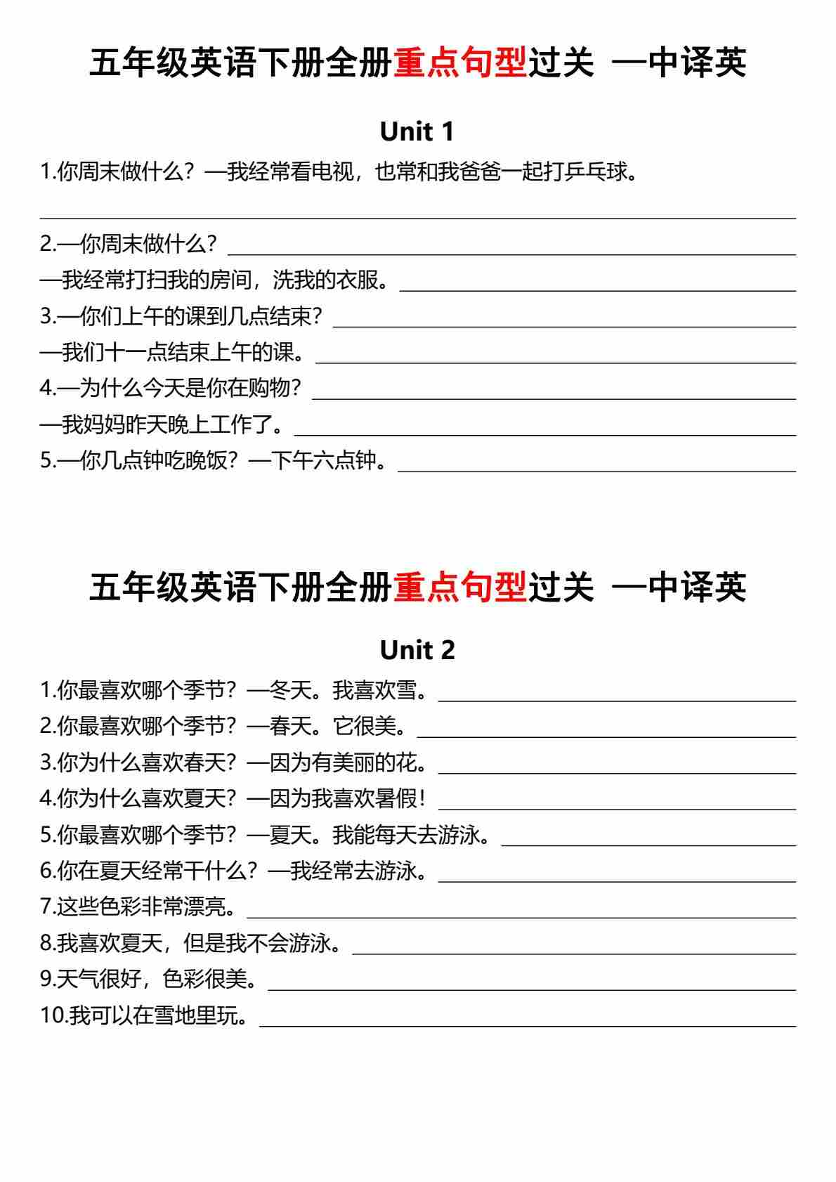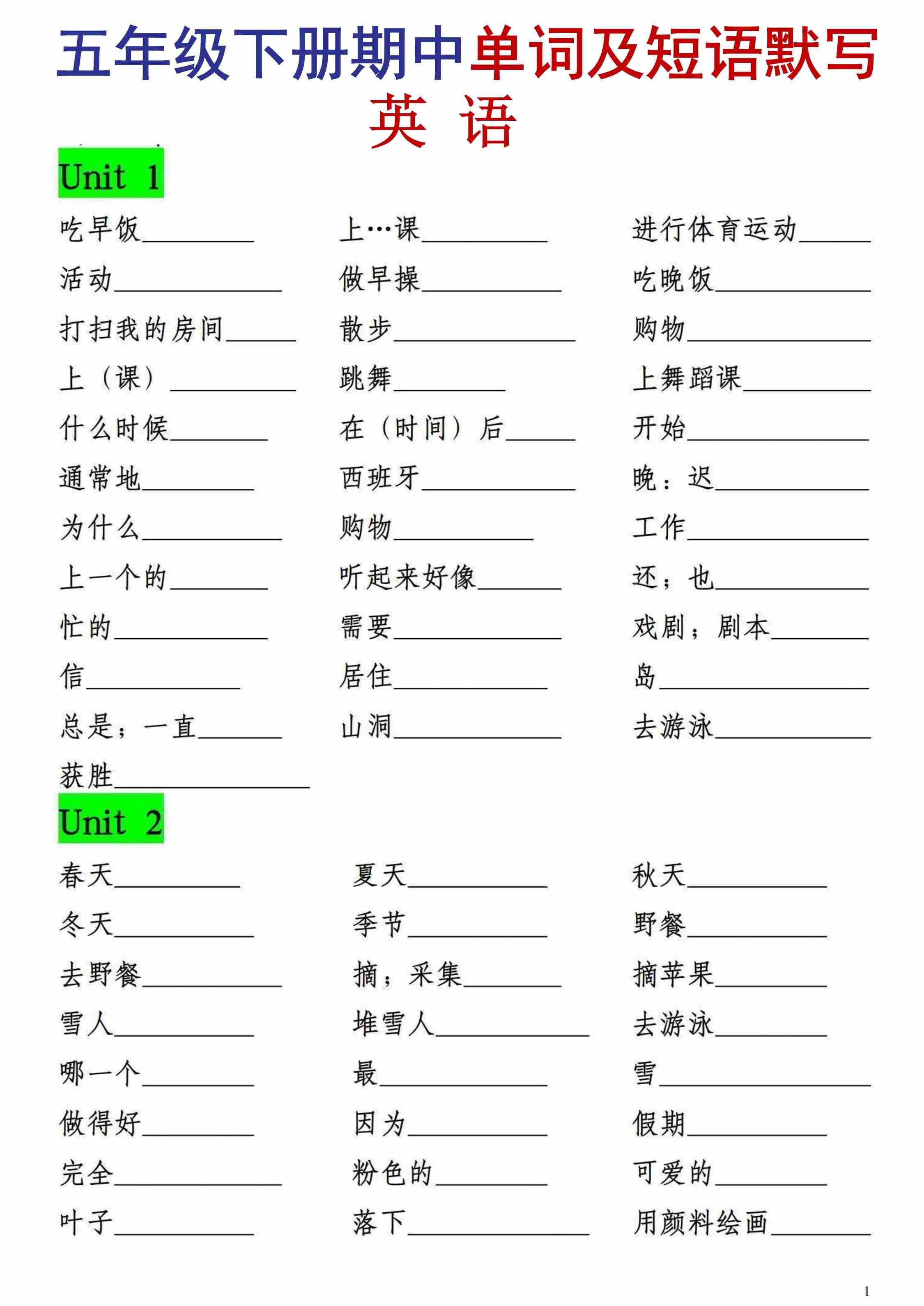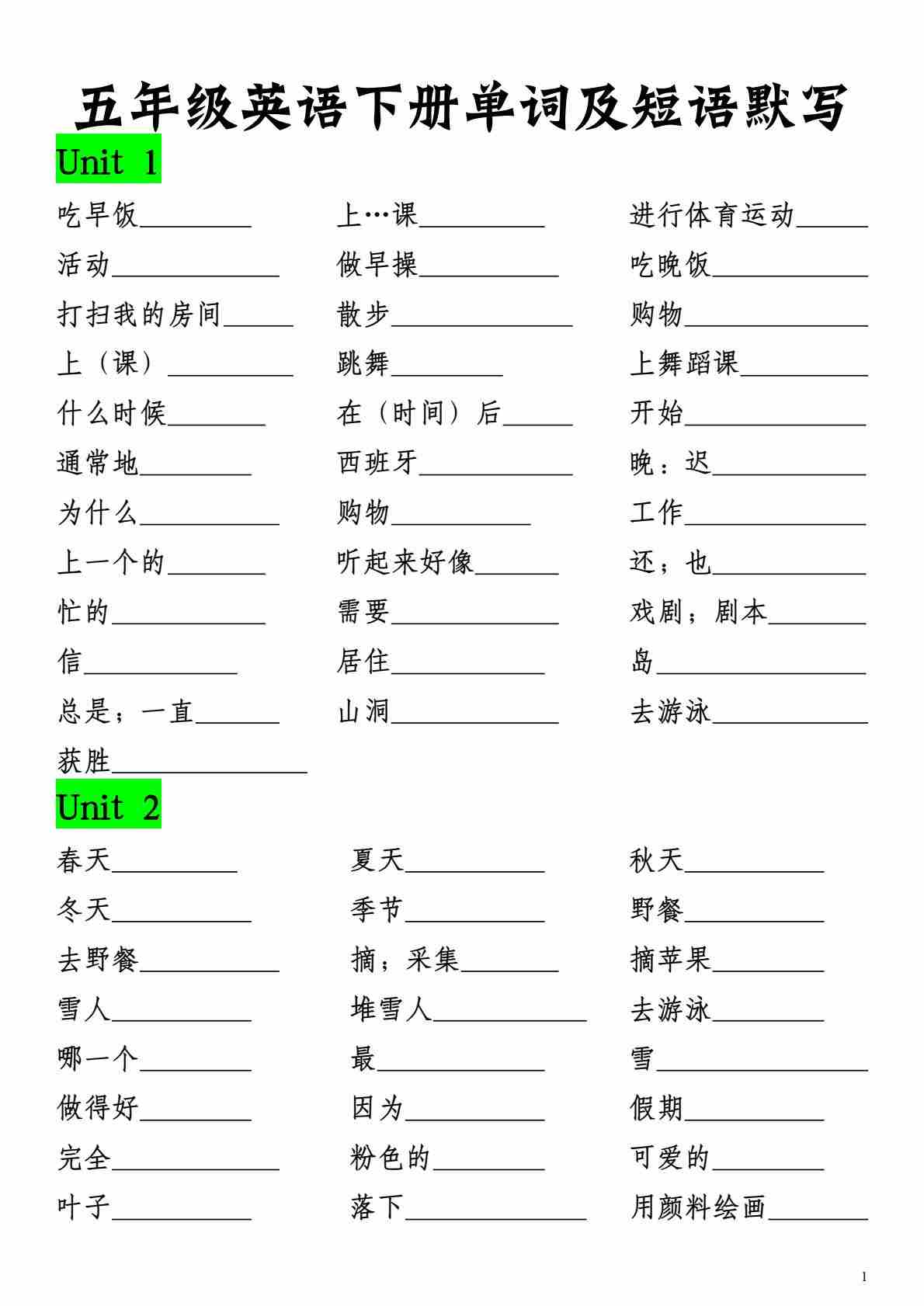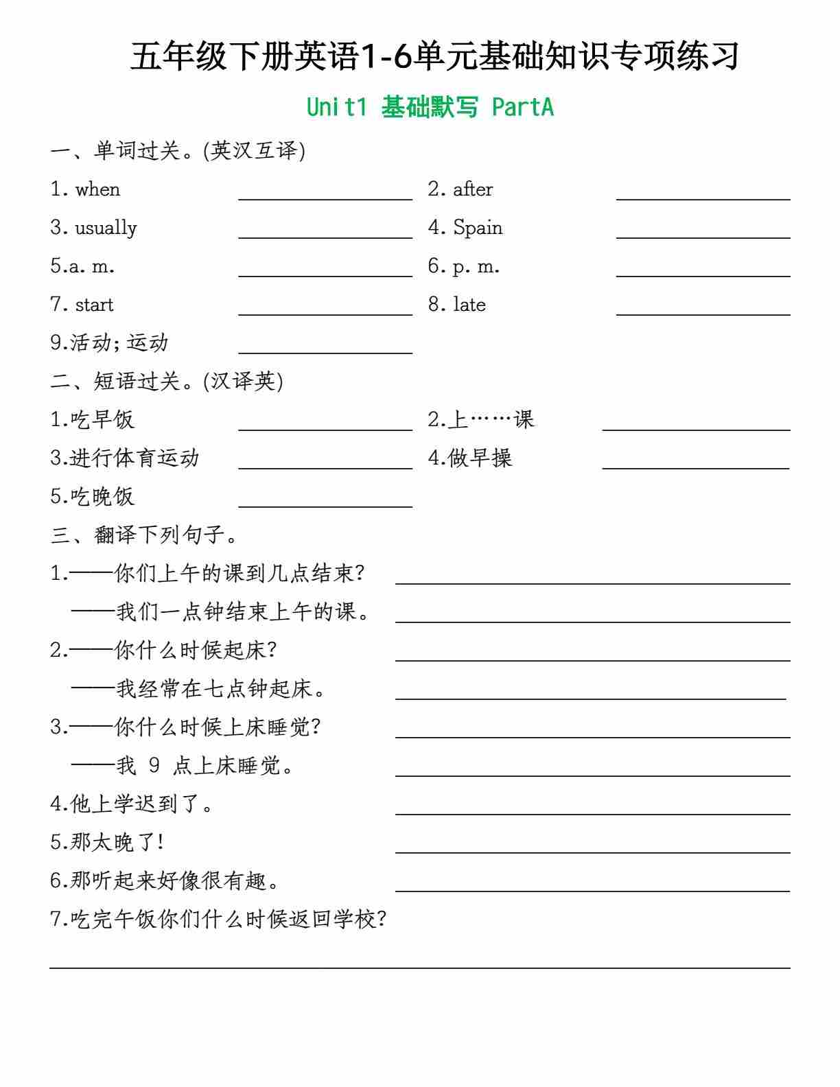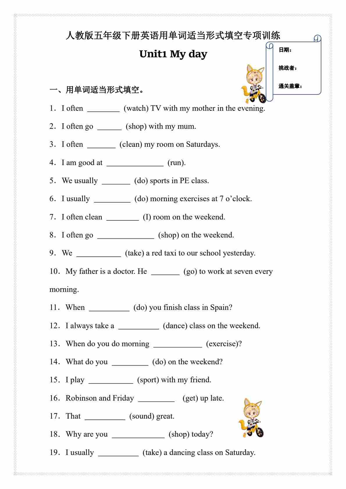 【(人教pep)用单词适当形式填空专项训练unit1-unit6】五下英语